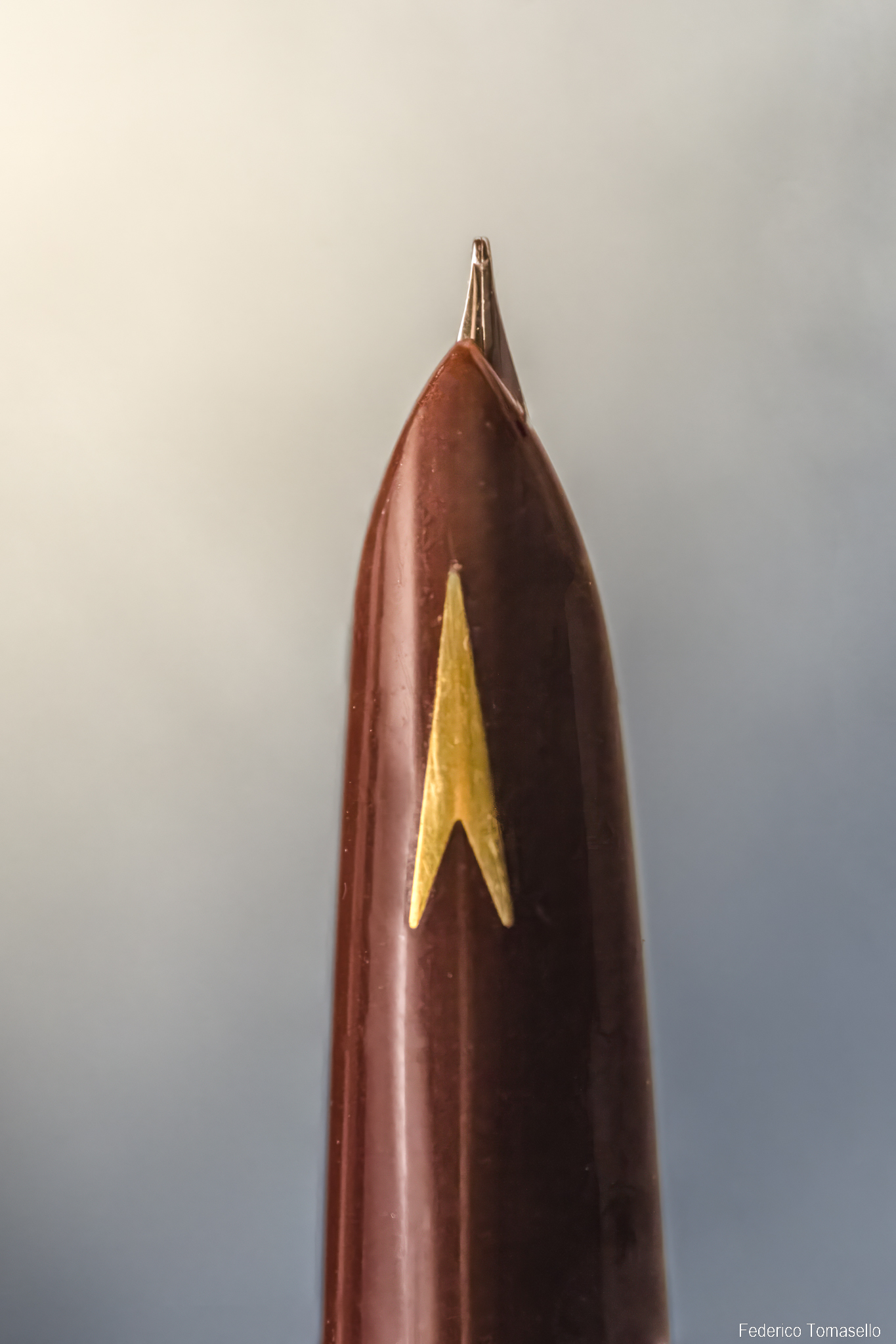 -nonostante il pennino sia storto, il fusto scivoloso e l'unico modo per impugnarla bene è usare la "freccia" di decoro come punto di riferimento (da guardare ininterrottamente, perché la penna ancora tende a girarmi in mano);