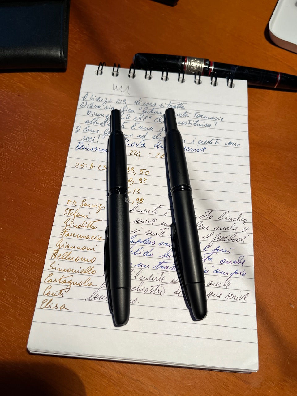 Il pennino scrive molto bene è un F sottile al contrario della Capless che è un F abbondante, quello della Capless in oro con tratto più abbondante ed inchiostro diverso appare più scorrevole invece quello della A1 ha un podi feedback ma le differenze sono tutte qui.