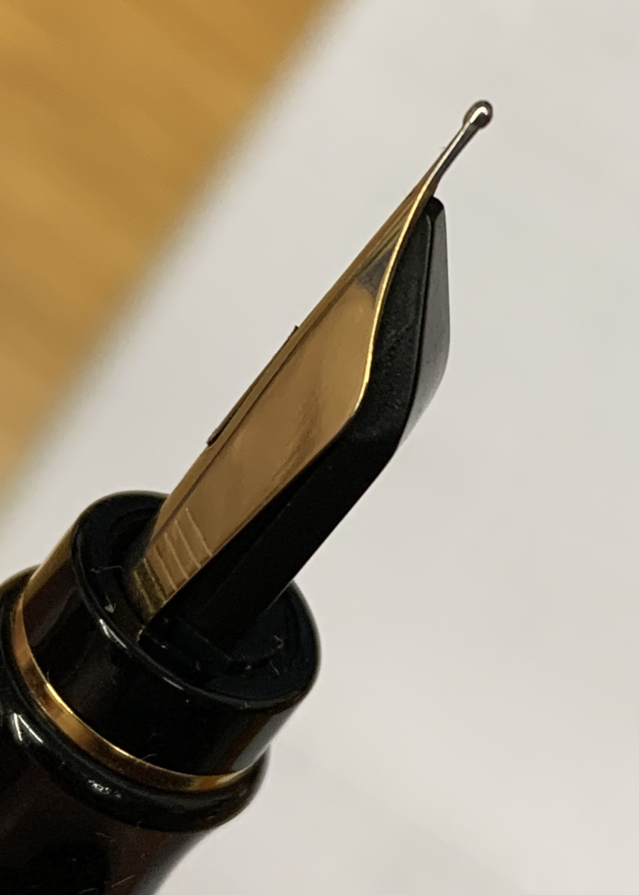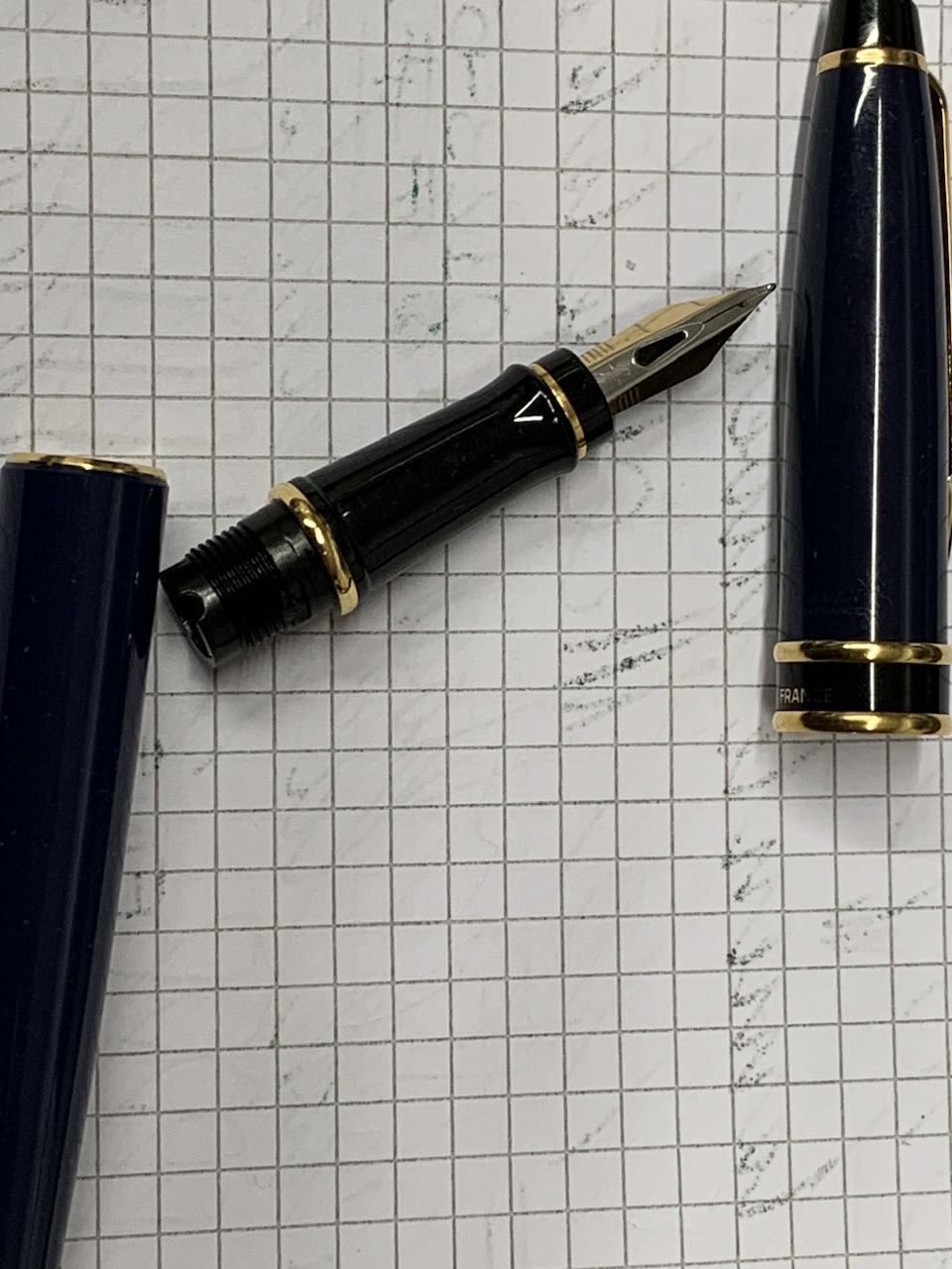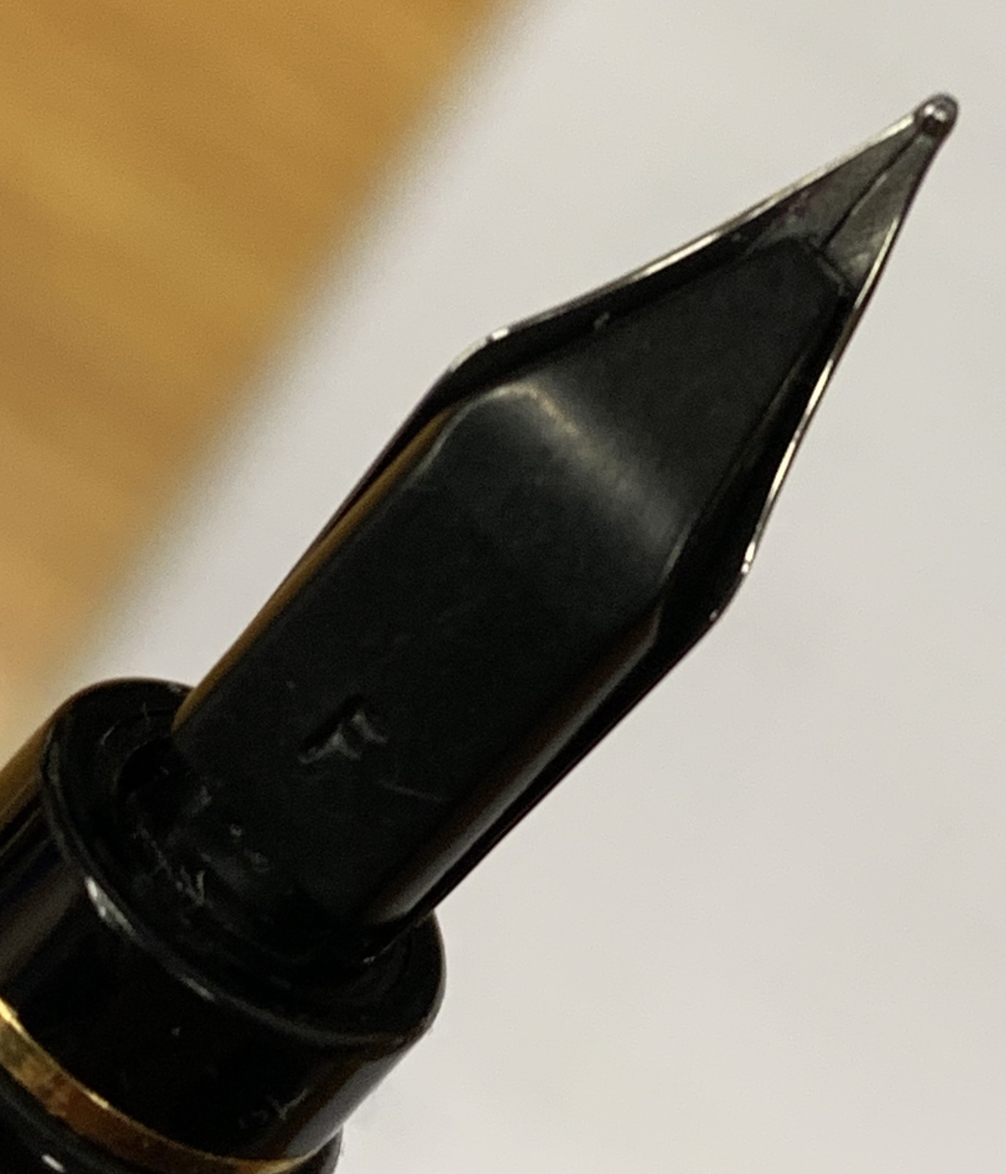 Eh sì, è vero, sula parte di pennino che si innesta nella sezione ho trovato un qualche segnetto di corrosione, più che altro la placcatura che si è scrostata, poca roba fortunatamente, il danno più serio è sul davanti dove l'inchiostro lasciato seccare ha corroso uno dei rebbi vicino al taglio facendo un buchino passante.