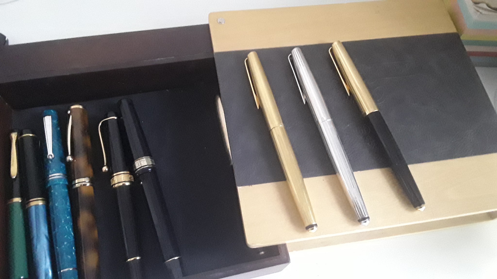 Credo di aver completato la serie delle 98 riserva magica con la 98 in Argento. Belle, due M e una F. Delle tre, caricate con lo stesso Parker Quink blu, tutte in sostanza ottime, preferisco l'ultima perche', credo di non sbagliare e non peccare di presunzione affermandolo, non tutti i pennini sono uguali (e poi l'ultima é sempre la migliore)....
