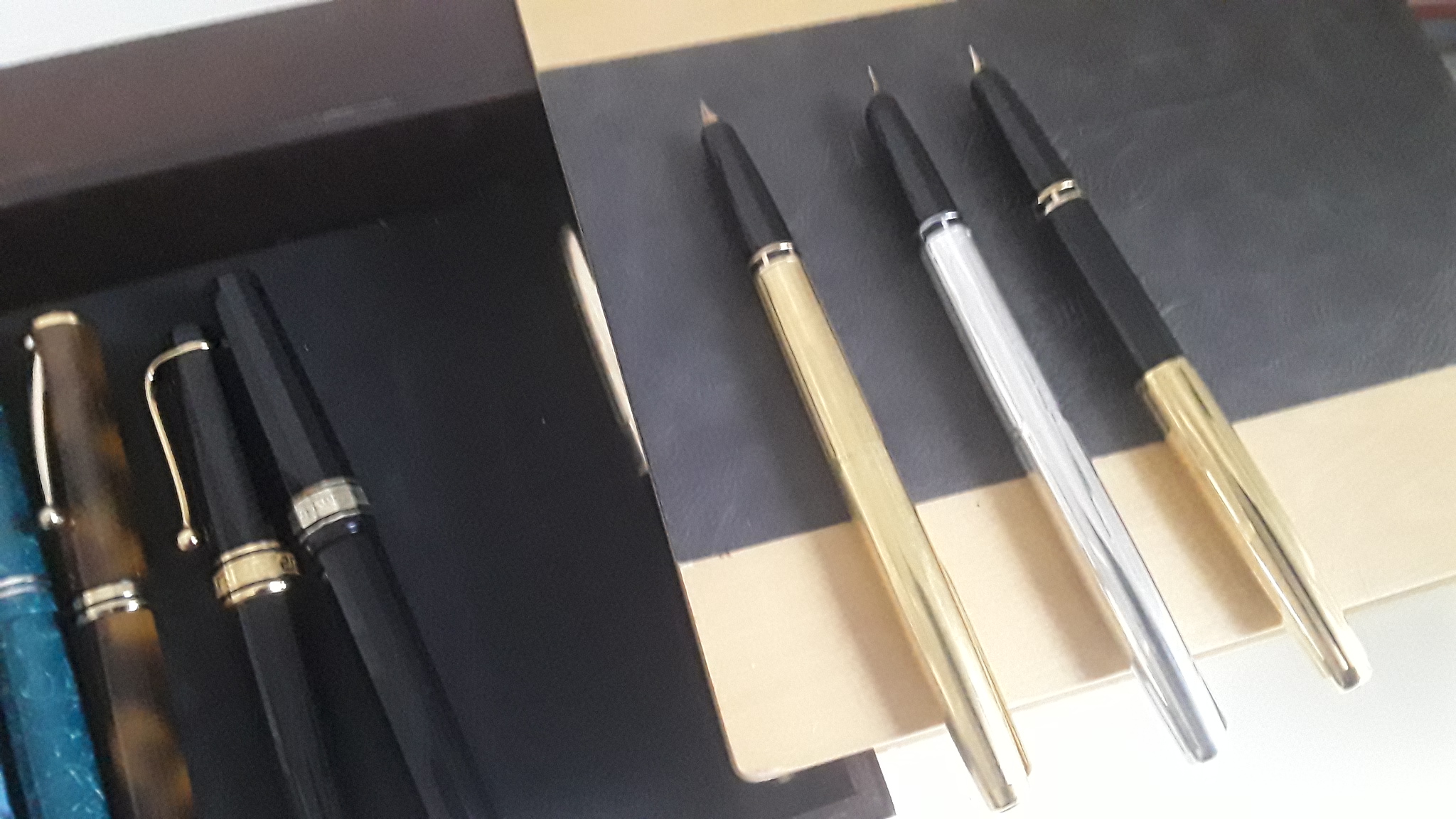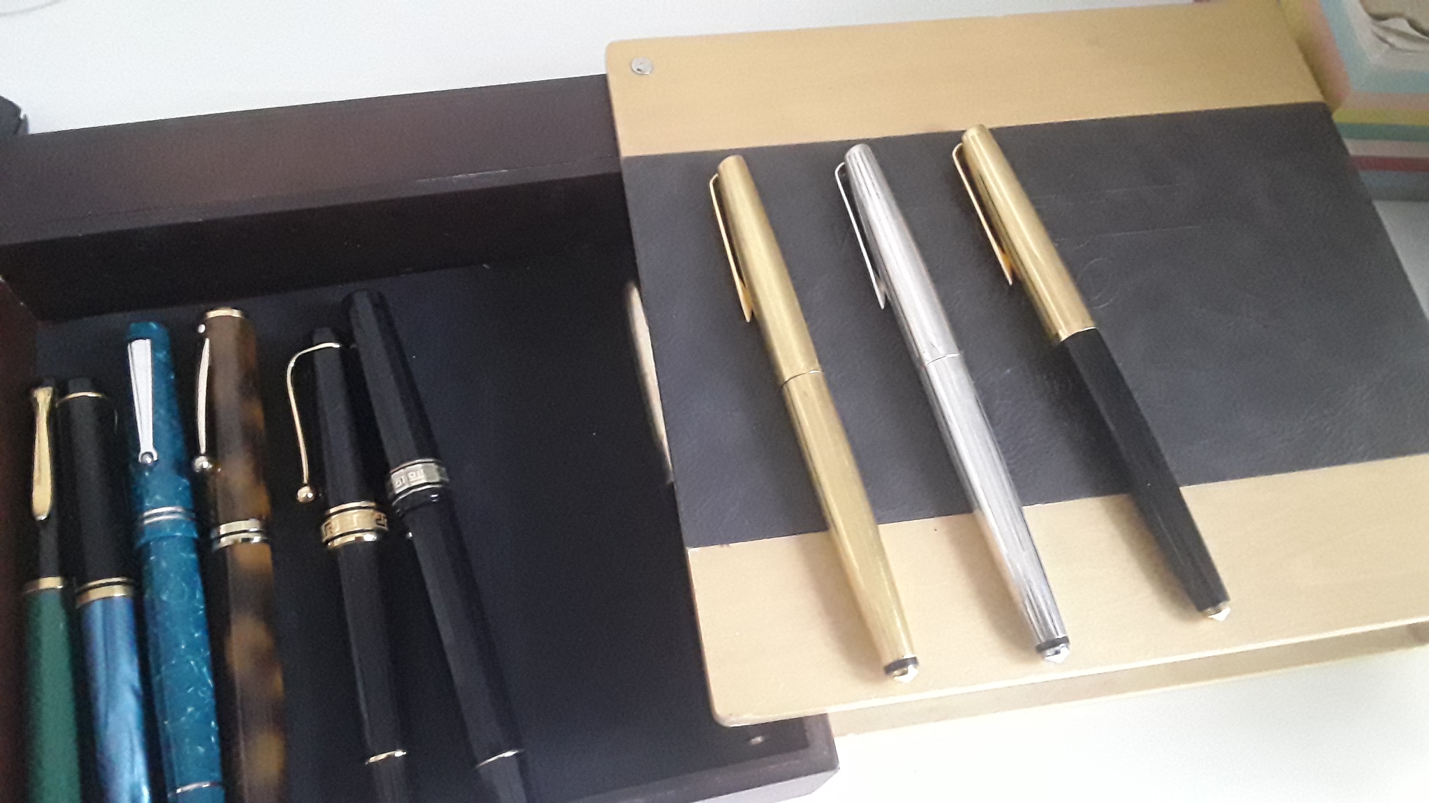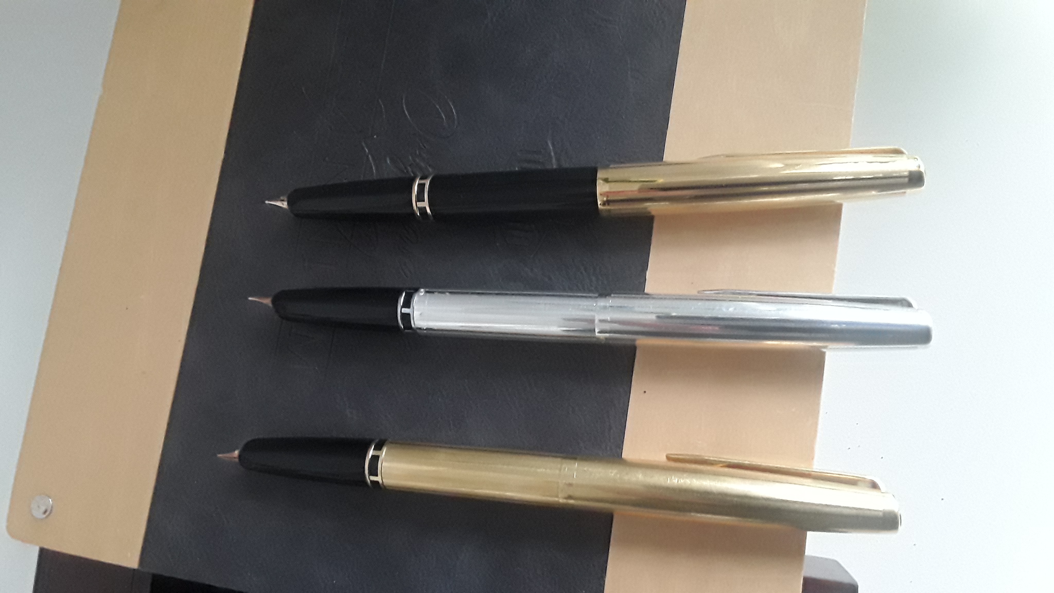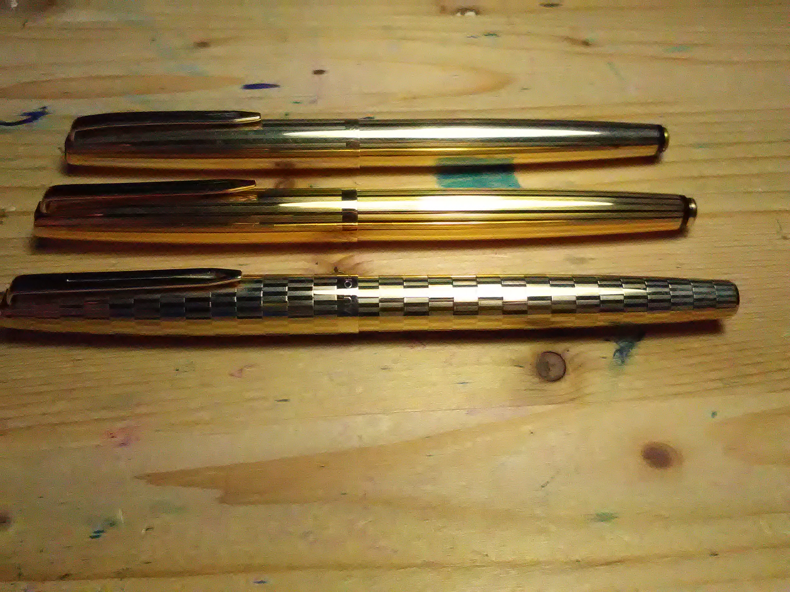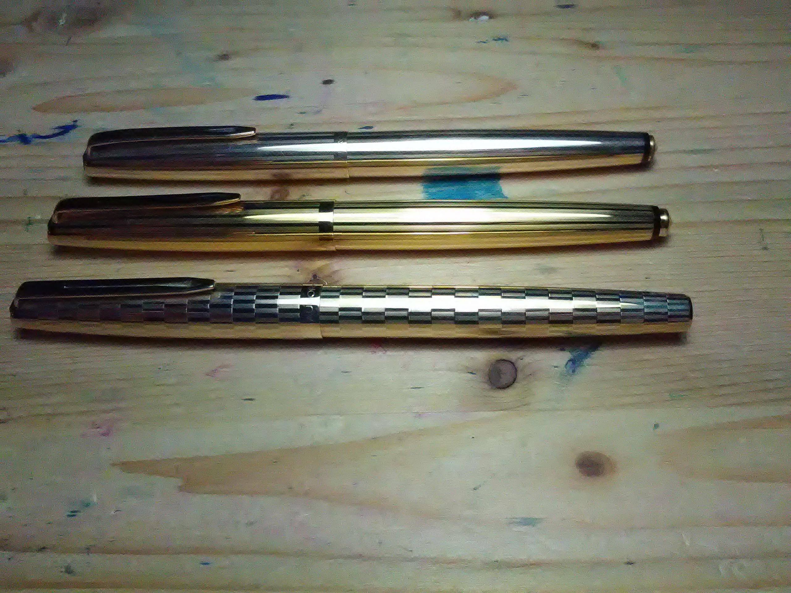 Credo di aver completato la serie delle 98 riserva magica con la 98 in Argento. Belle, due M e una F. Delle tre, caricate con lo stesso Parker Quink blu, tutte in sostanza ottime, preferisco l'ultima perche', credo di non sbagliare e non peccare di presunzione affermandolo, non tutti i pennini sono uguali (e poi l'ultima é sempre la migliore)....