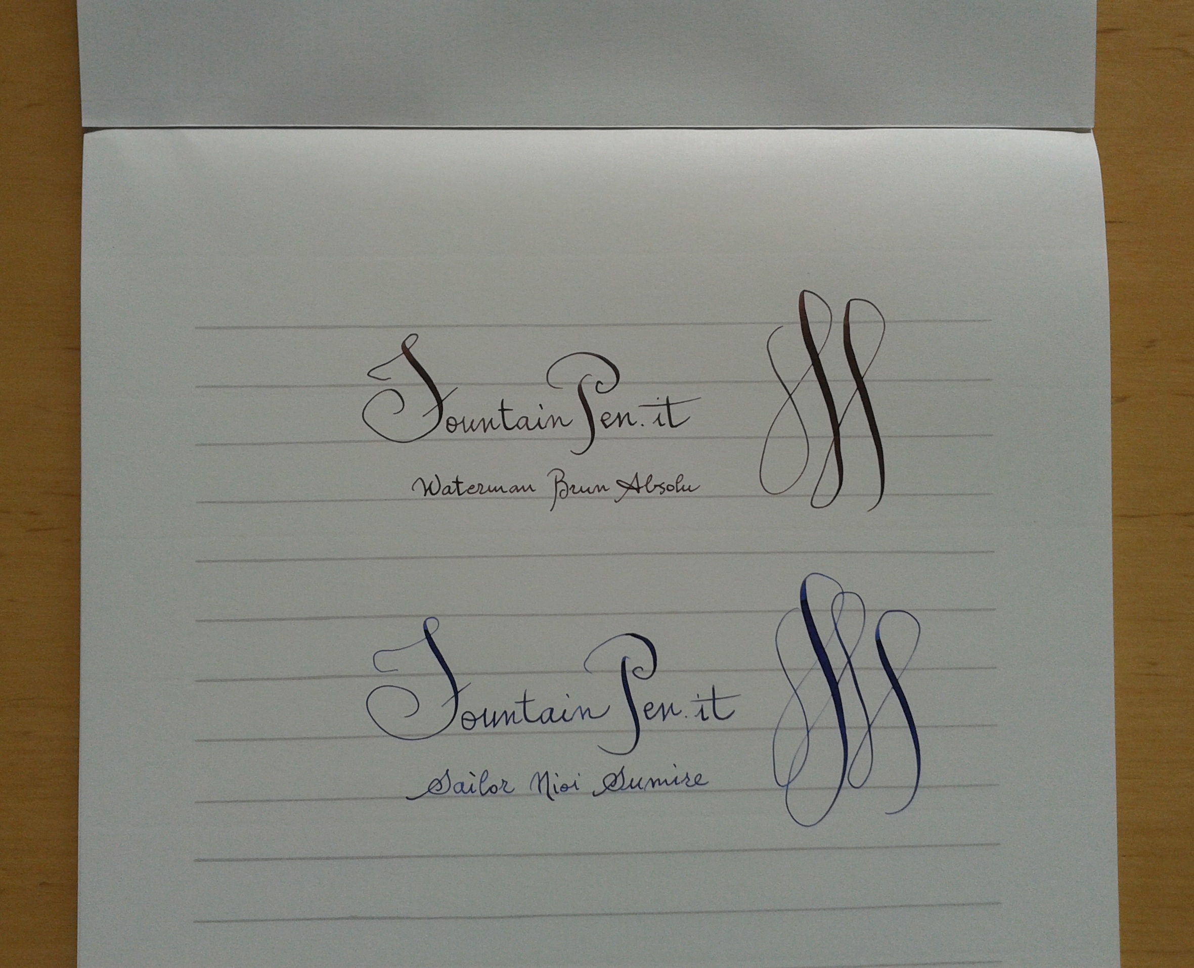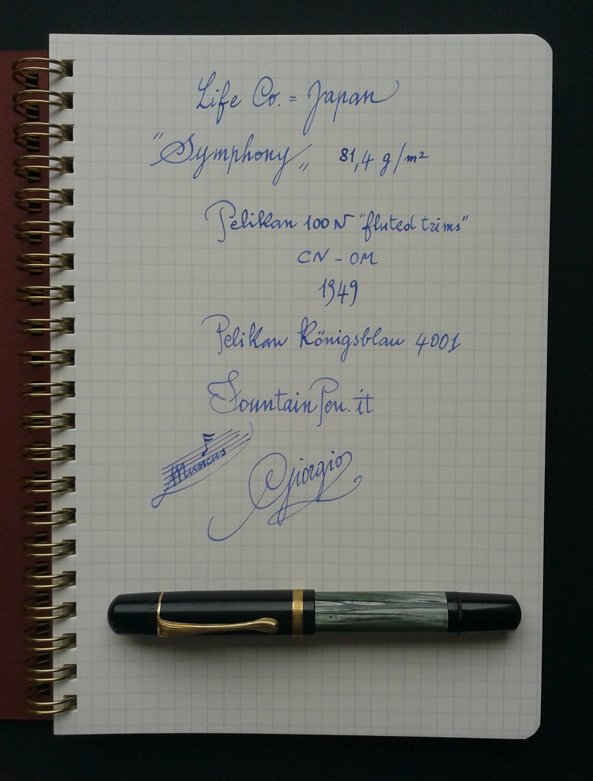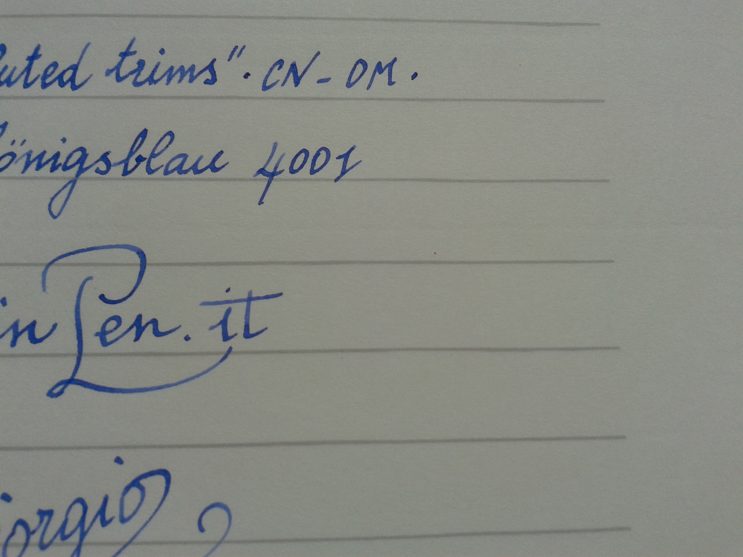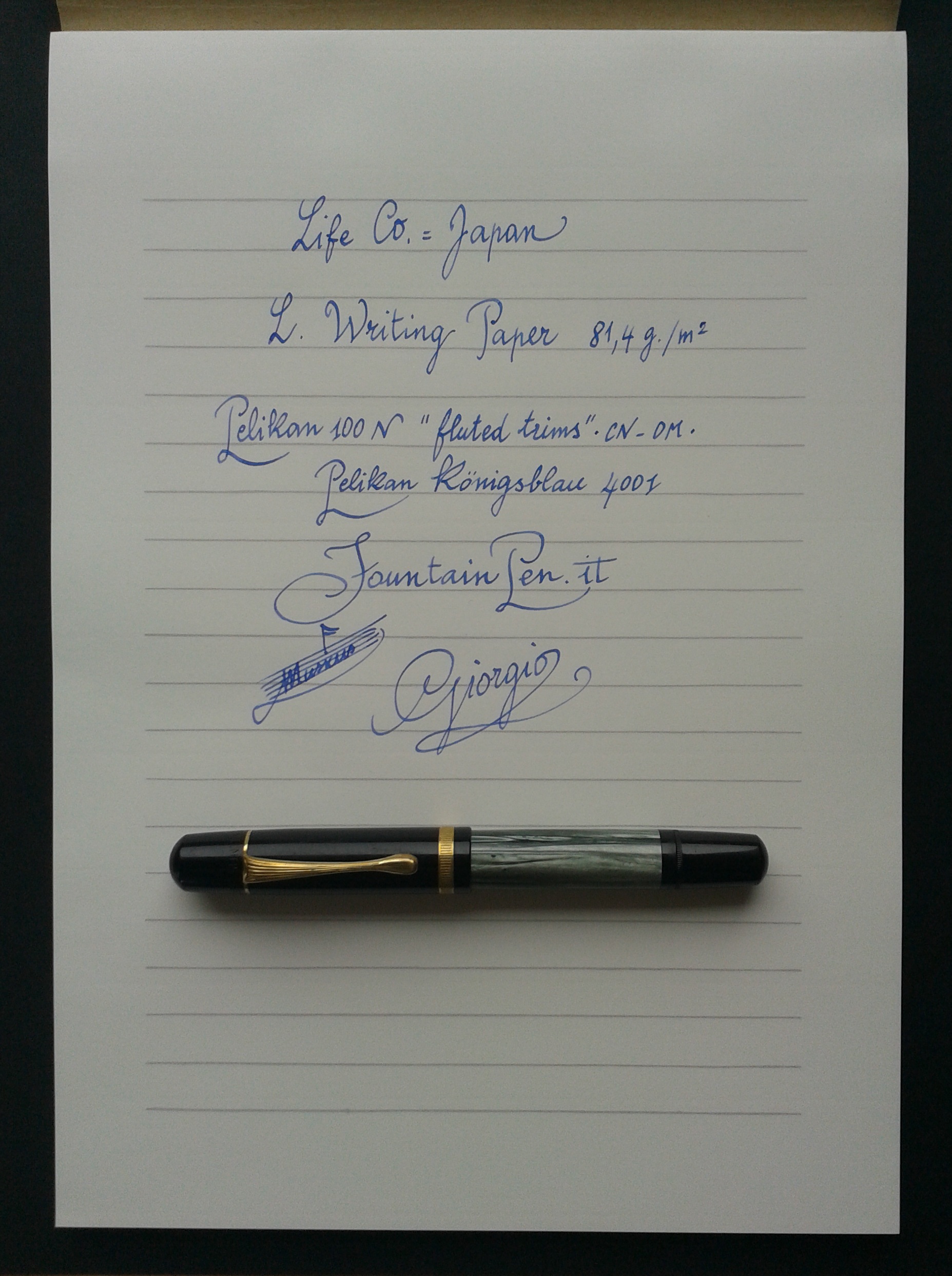 Prova di scrittura… La rigatura è di colore grigio chiaro ed ha la particolarità di essere irregolare, come tracciata a mano… … mentre il retro del foglio è privo di righe (bianco) e mostra nitidamente la trama della carta, con un effetto di “artigianalità” che trovo molto gradevole.