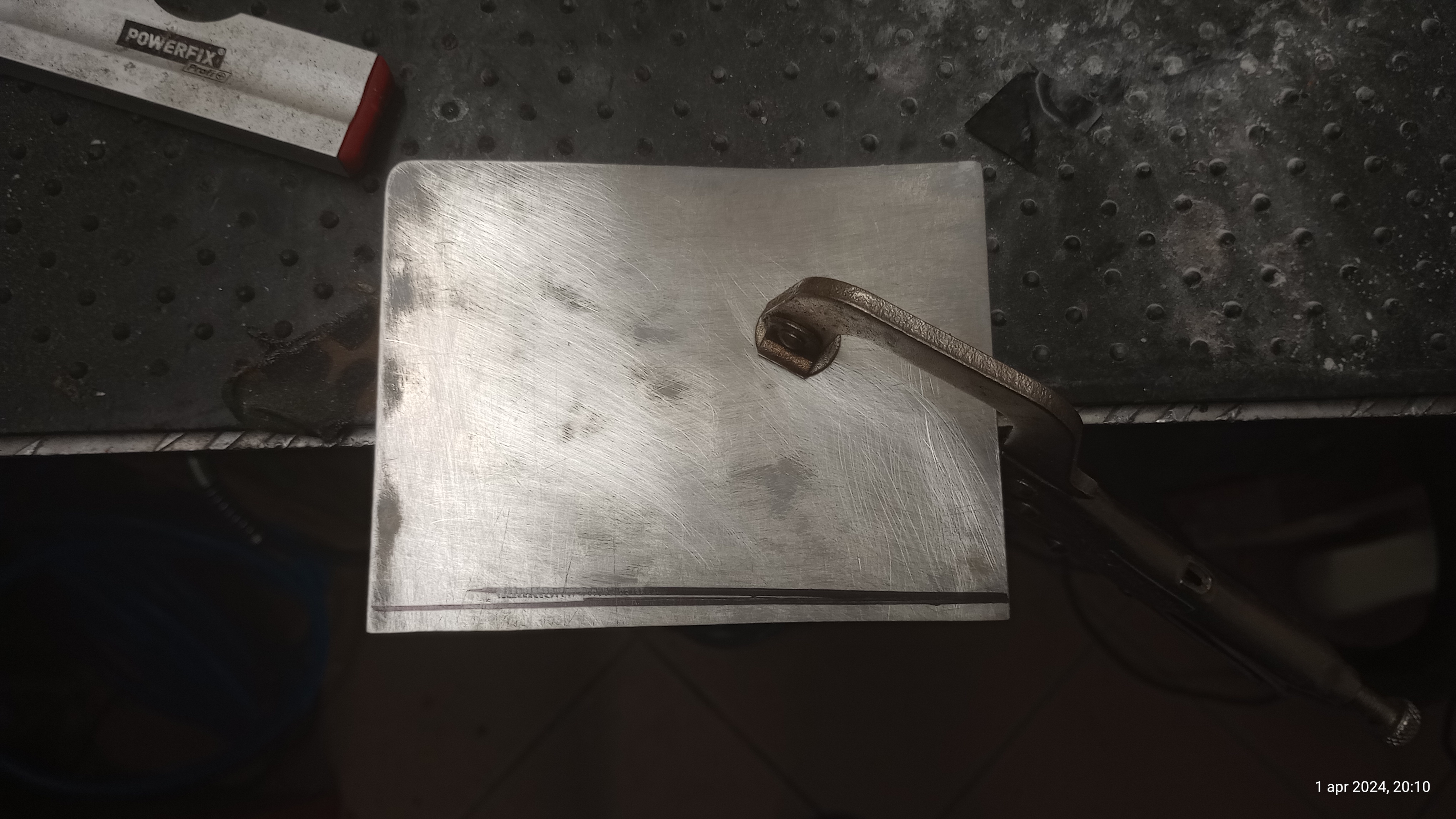 1) MATERIALI: una spatola quadra da stucco, mole, carta vetro, pinze a sezione tonda, dremel, pennarello indelebile e, soprattutto, GUANTI E OCCHIALI perché di dita ne abbiamo 10 ma a tagliersele è un attimo. Di occhi, peggio che andar di notte, ne abbiamo 2 soli.
