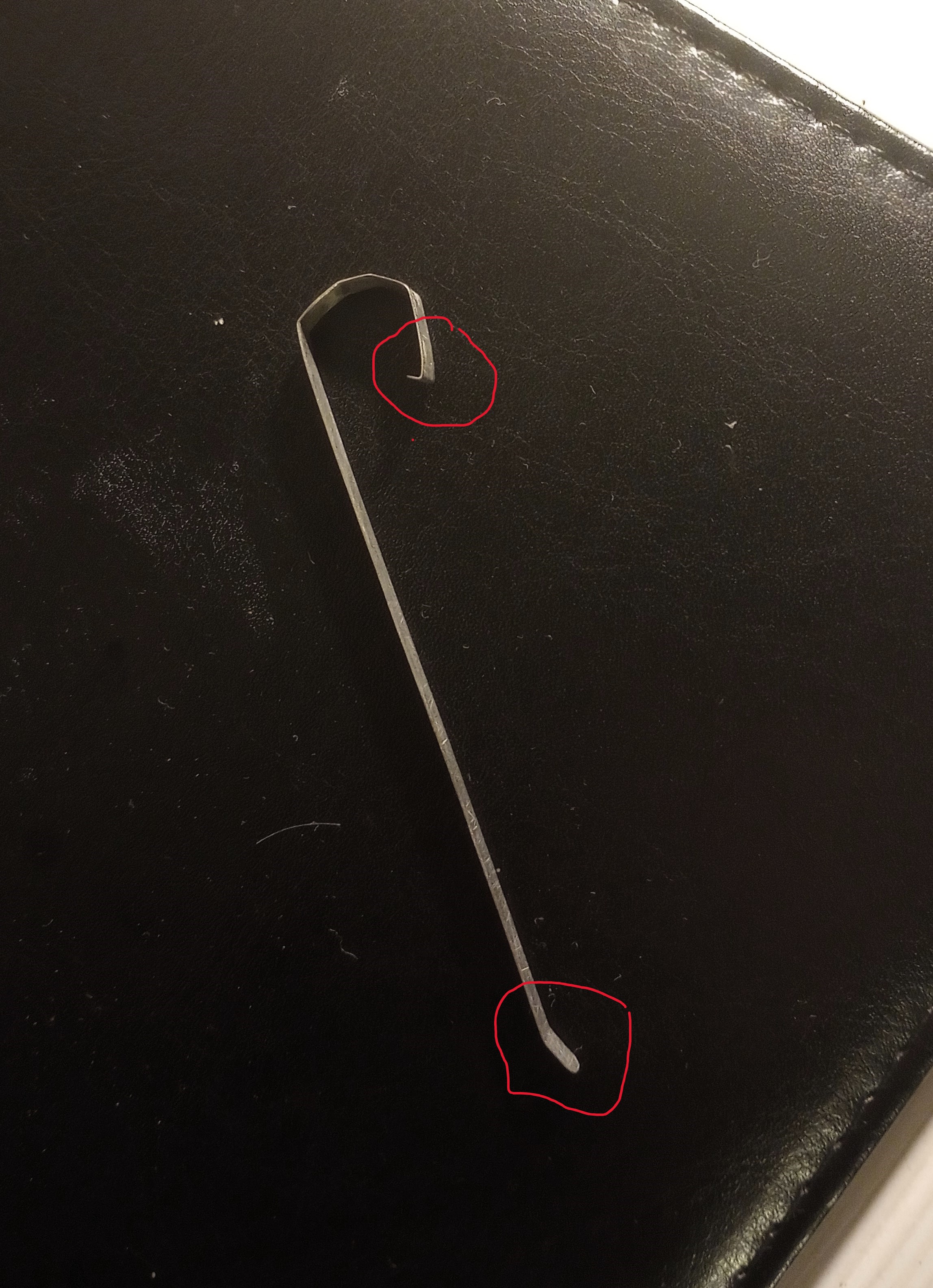 Accorgimenti importanti: le due estremità devono essere rientrate, in modo da rendere più difficile il loro incrinarsi contro il fusto. In particolare l'estremità del gambo deve essere leggermente piegata verso il basso, così da facilitare la presa con le pinzette all'atto dell'estrazione.