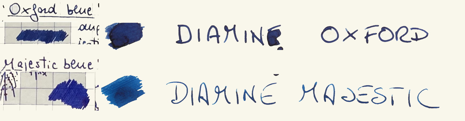 Eccomi, dunque ho usato penne molto molto simili come comportamento per Oxford e Majestic, mentre il royal blue è in una penna dal tratto lievemente più fine.