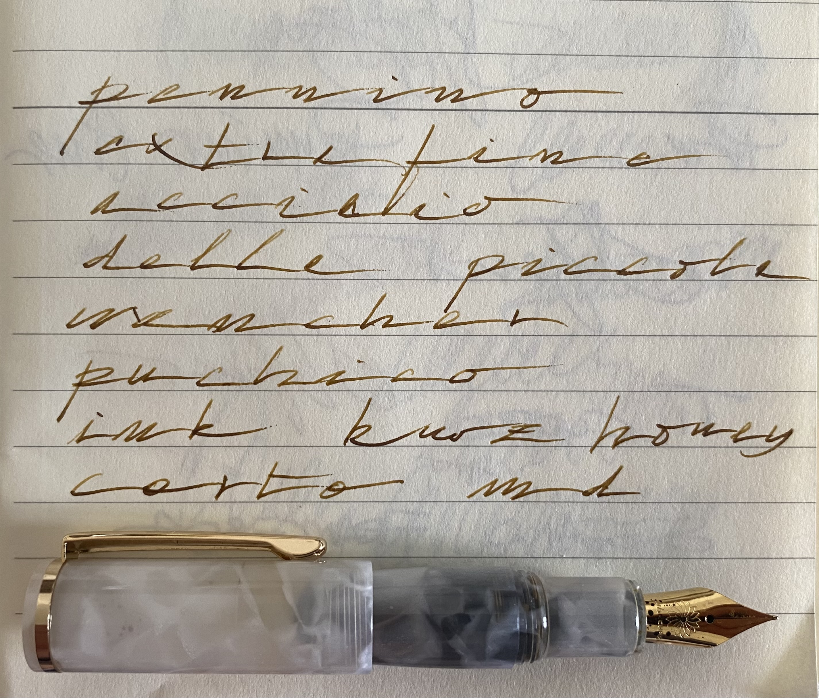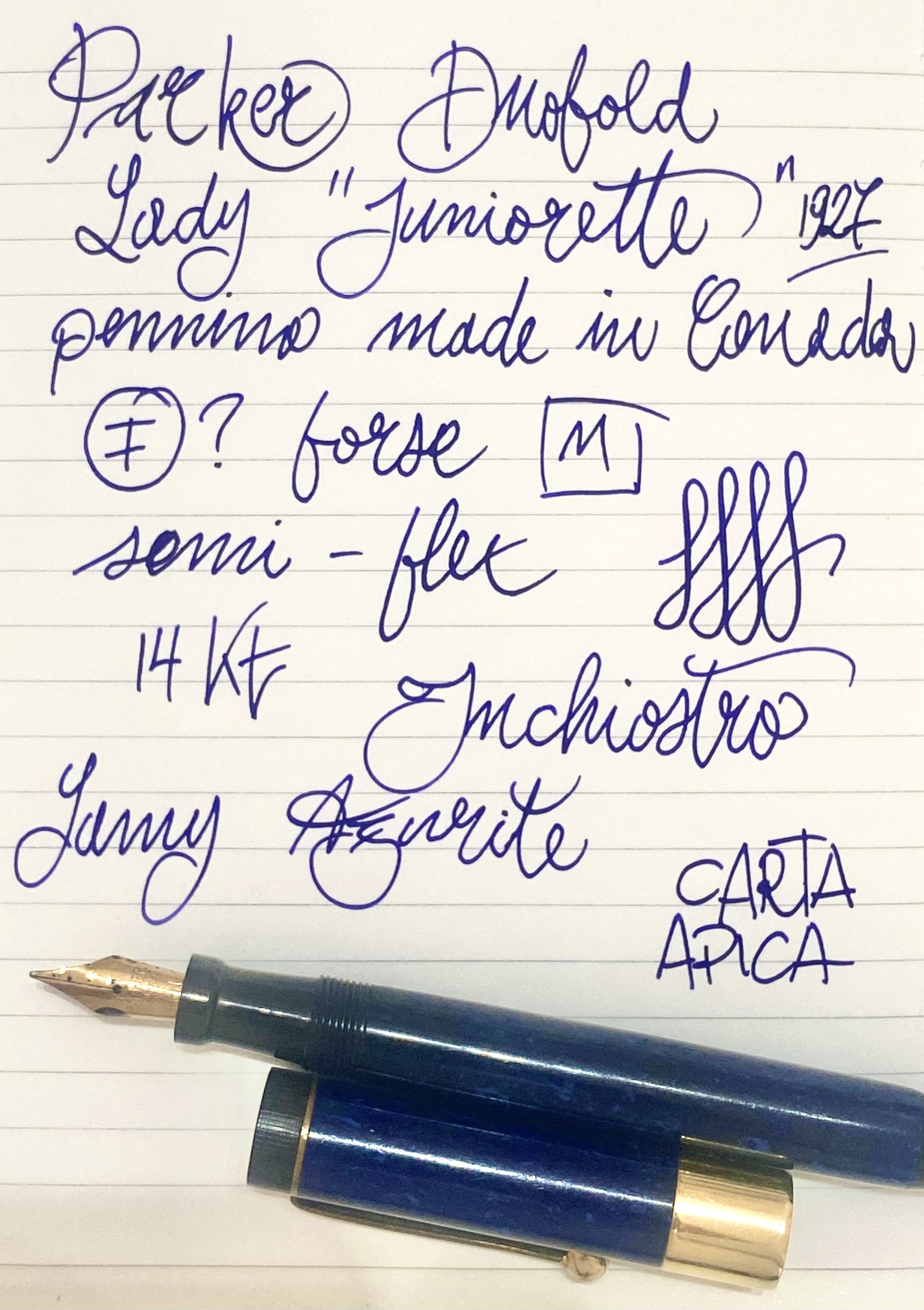 Effettivamente non lo trovo leggibilissimo. Sicuramente la rigatura del foglio è invadente, ma non capisco se la penna salta qualche tratto o se sia l’inchiostro che ancora non ha ben ossidato la carta…
