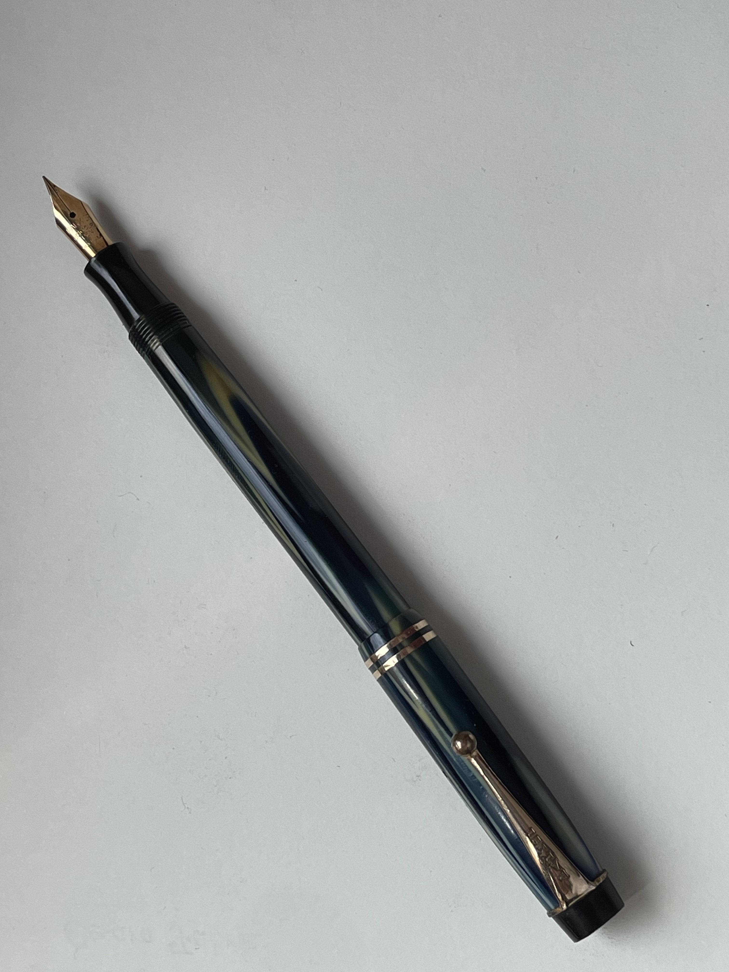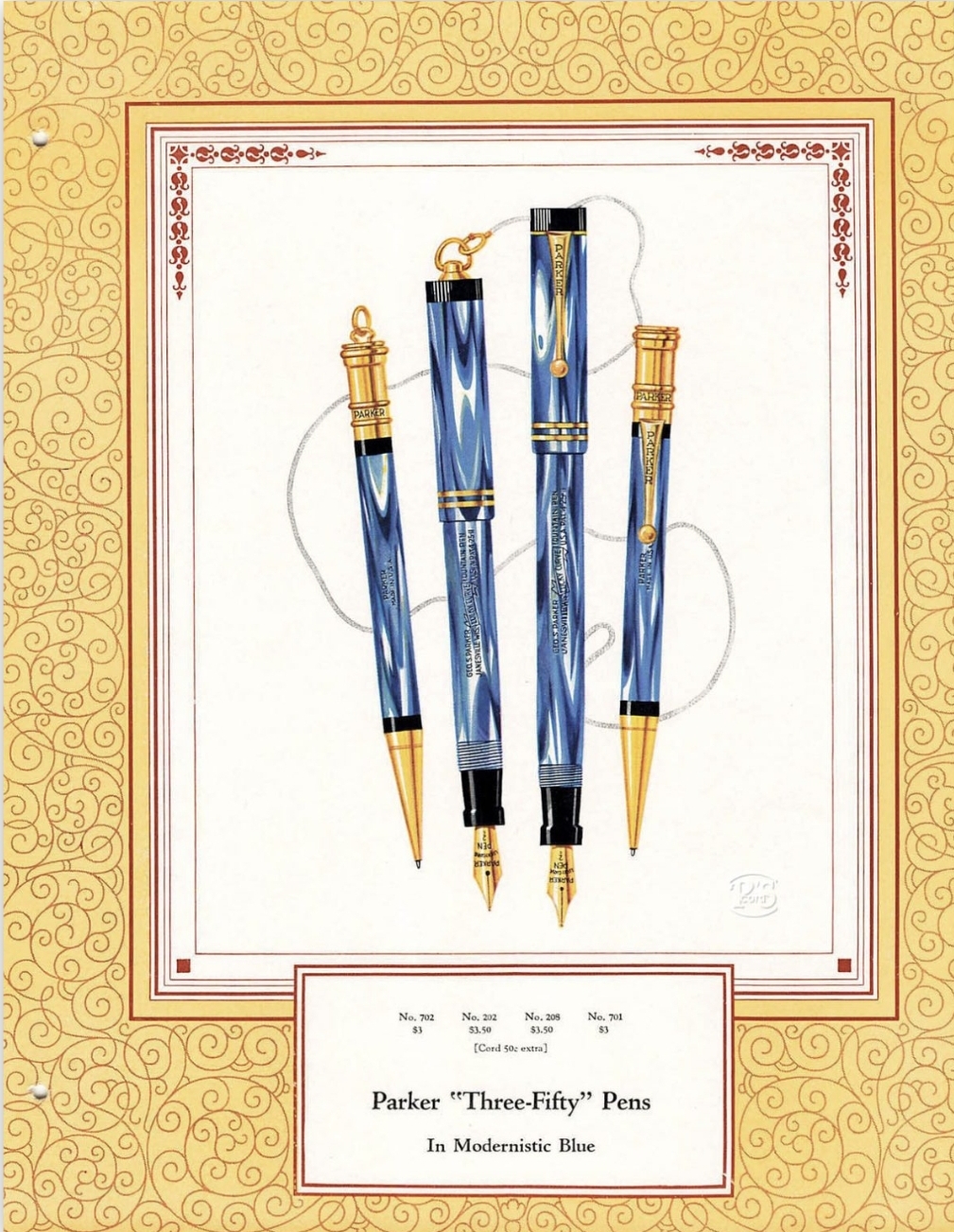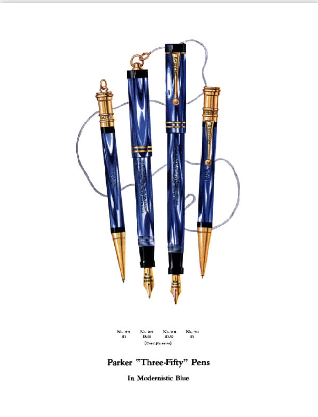 La produzione è iniziata nel 1928 e inizialmente, secondo quello che ho trovato in una veloce ricerca in internet, veniva anche chiamata Three Fifty, perché il prezzo di vendita era di 3,5 dollari, mentre la matita veniva venduta a 3 dollari. La versione dell'anno successivo veniva pubblicizzata come Modernite Blue o Modern Blue and White. Si tratta di una penna streamlined, non molto popolare tanto che la produzione è stata dismessa dopo due o tre anni e quindi non così comune da ritrovare.