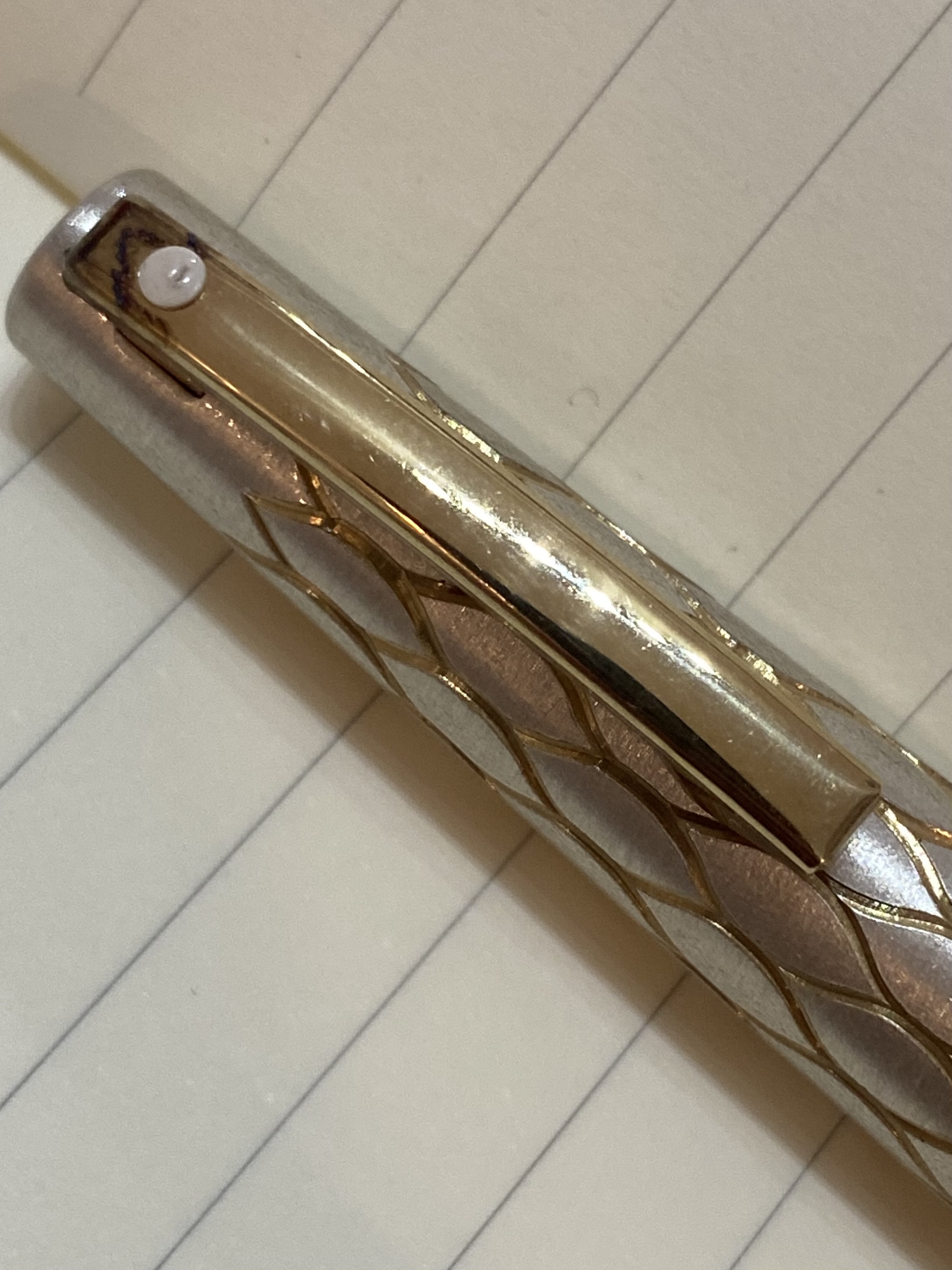 La #642 fa parte della ‘seconda ondata’ di lady sheaffer: presenta infatti una clip sul cappuccio col classico ‘white dot’ aziendale, siamo circa nel 1974/75.