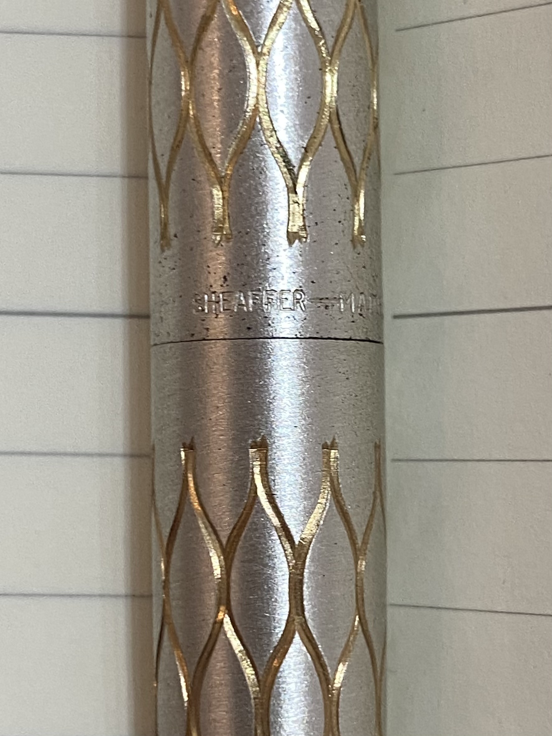 Scritta ‘sheaffer made in usa’ incisa alla base del cappuccio.