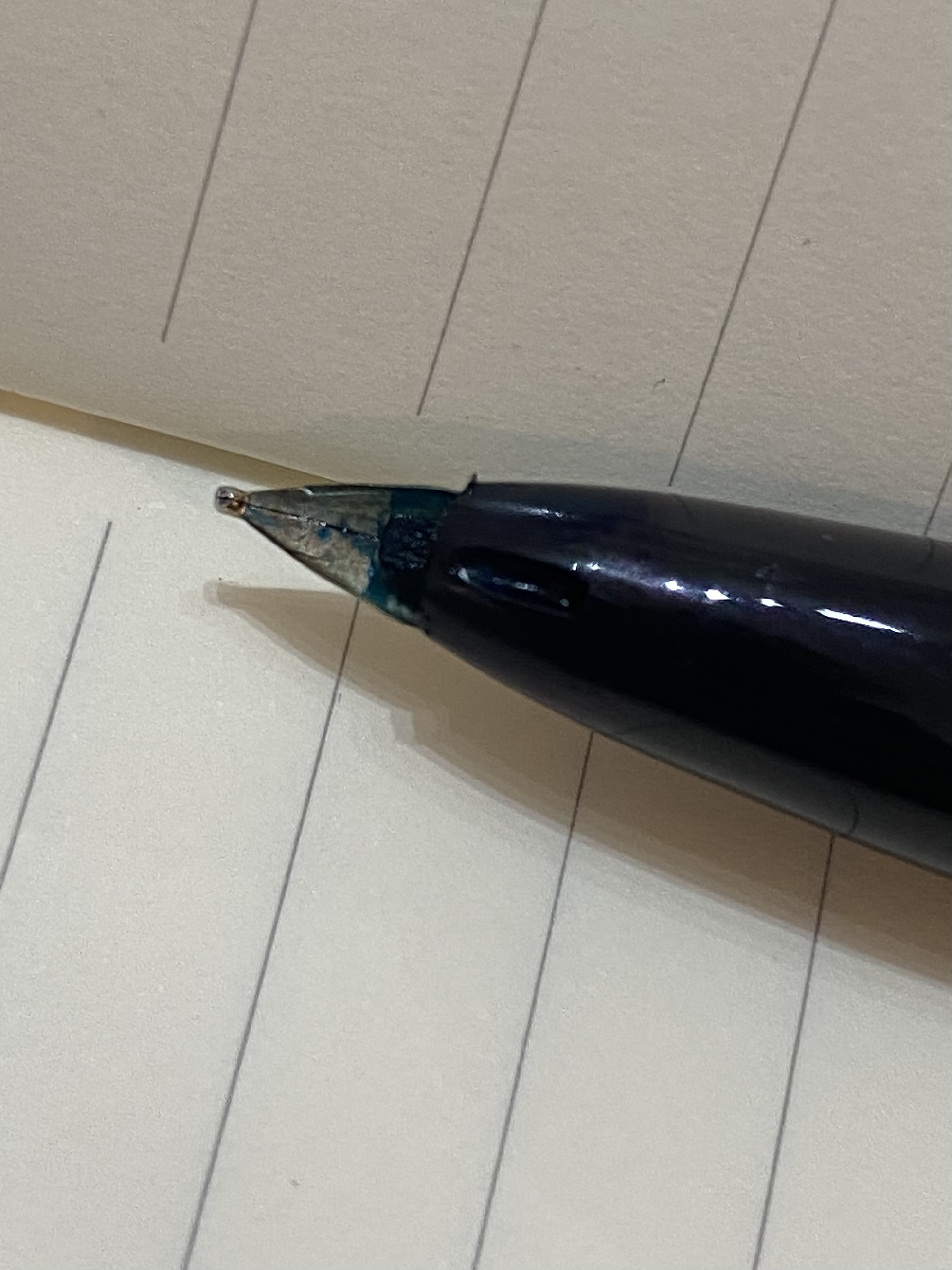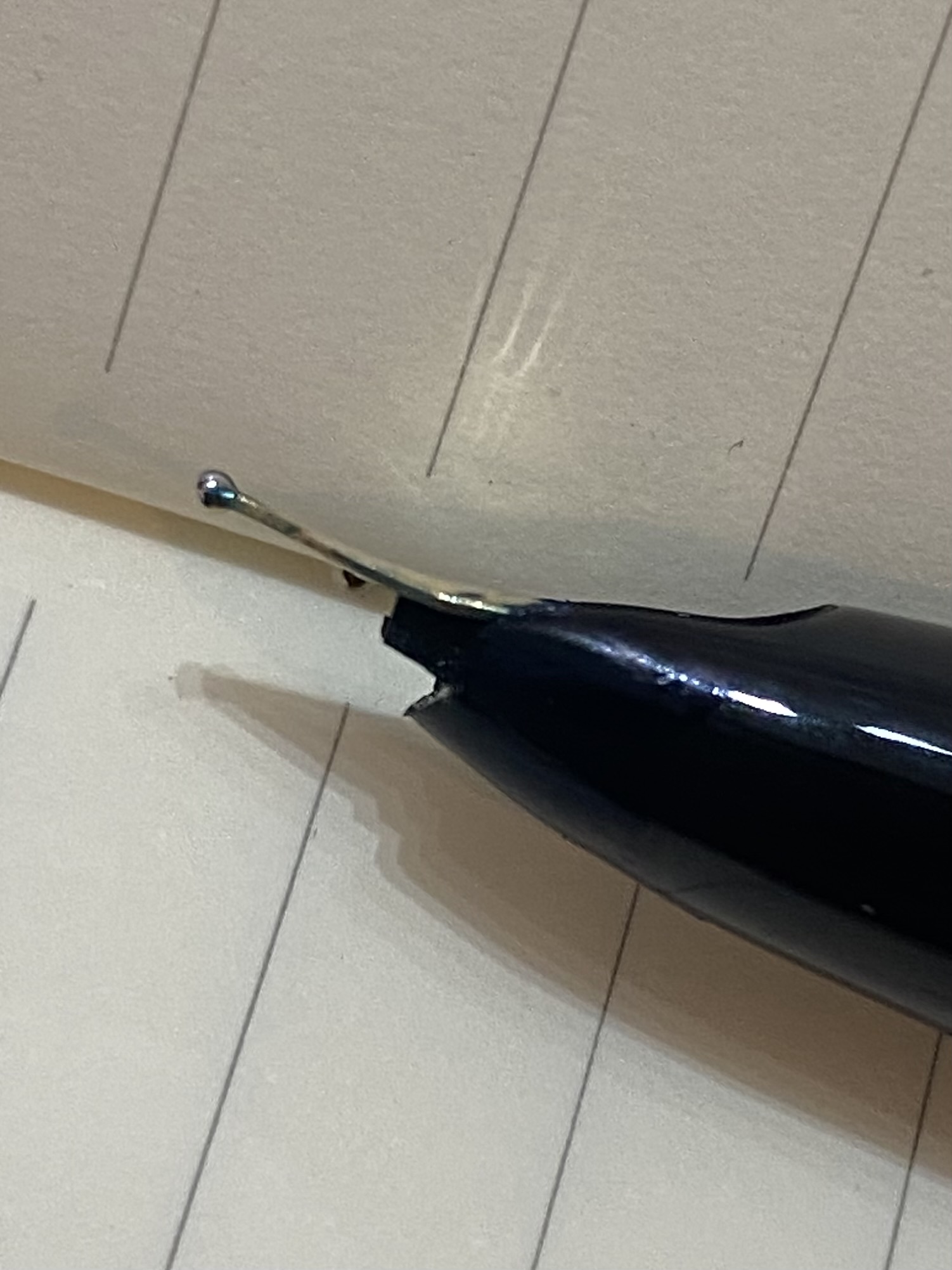 Puntale nero con alloggiato un pennino in oro 14ct del tipo ‘stylpoint’ con punta rivolta in alto.