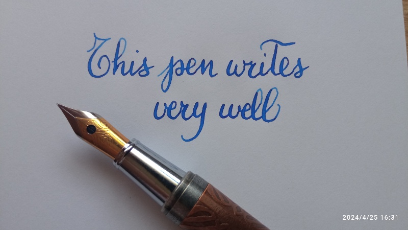Questa penna di fabbricazione cinese è considerata una stilografica con pennino flessibile. Il costo non supera i 10 euro (spese di spedizione comprese). È strutturalmente una penna favolosa. Sezione in metallo, chiusura a scatto, fusto in rame decorato e laccato. Il pennino però non è flessibile e chiunque lo abbia provato lo sa per certo. È un pennino semirigido. Ecco l'intervento di customizzazione con cui ho portato questo pennino dalla condizione di semirigido a flessibile.