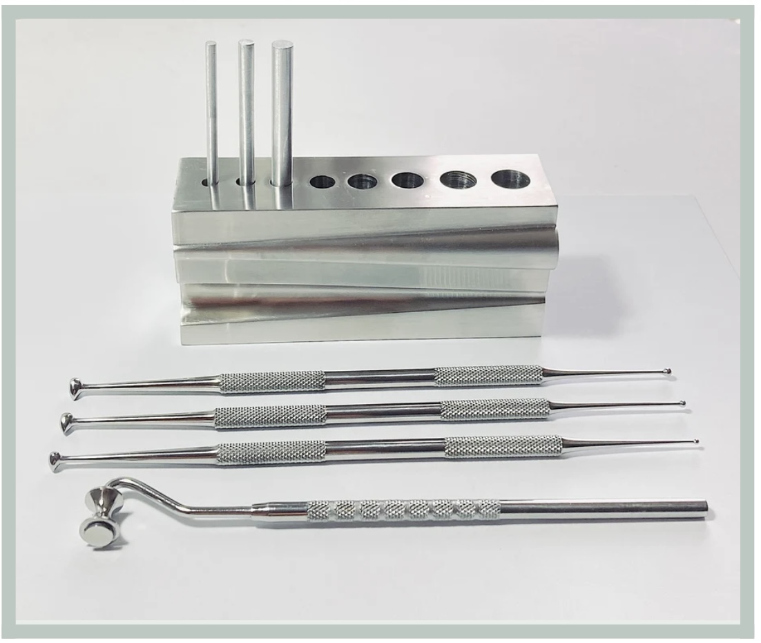 Il set di attrezzi è lo stesso, cambia la piastra di 'piallaggio' che ha i buchi per estrarre alimentatori e pennini.