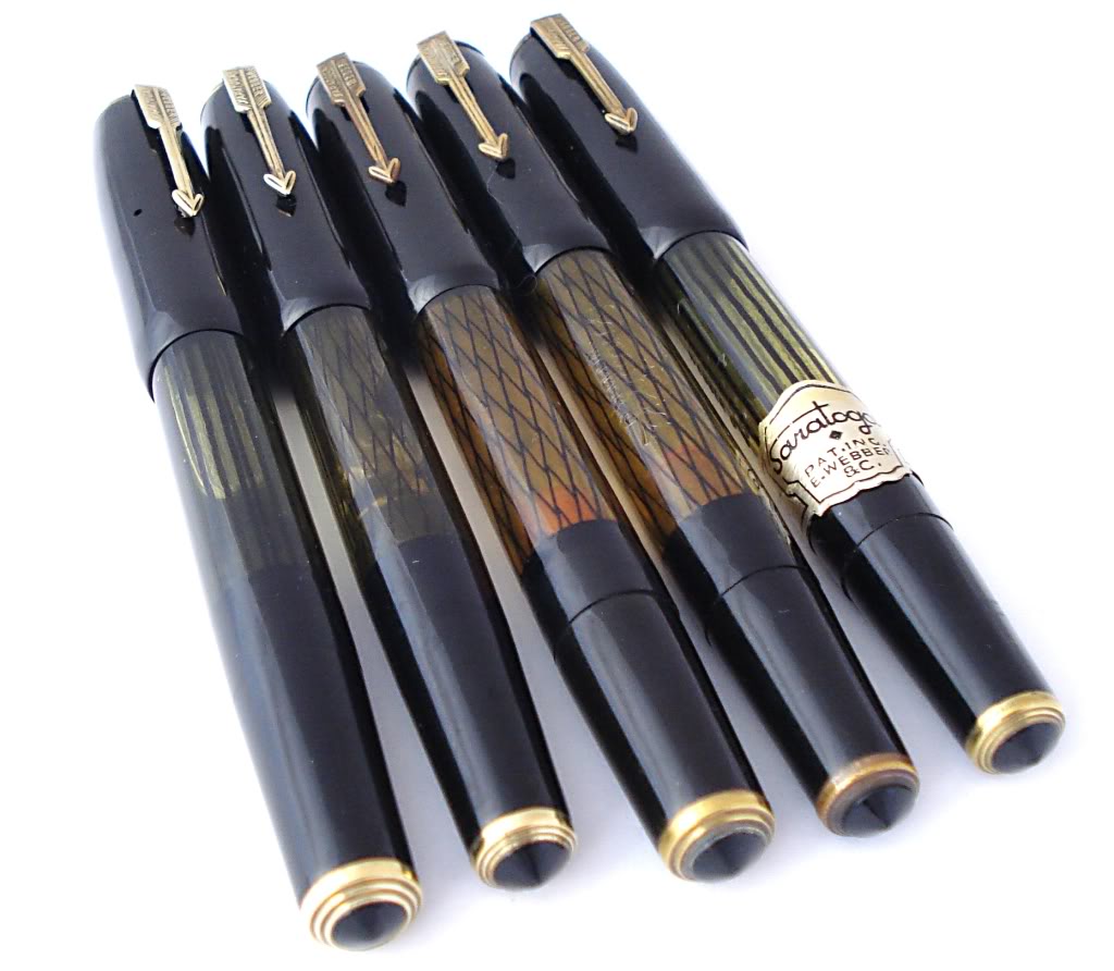 Saratoga Maxima "vacumatic", 1942/43. Notare il pennino "Aurital", altro nome di fantasia per metallo autarchico come necessario allora, tipo quelli F.I.P.O.S. (“Autarchic“ e “Autarchic Inoxor”), Ancora (“Zanio”), Aurora (“Platiridio”), Omas (“Permanio”), Kosca (“Nichroma”), Stilus (“Osmiria” e “Nicrodor”), ecc.