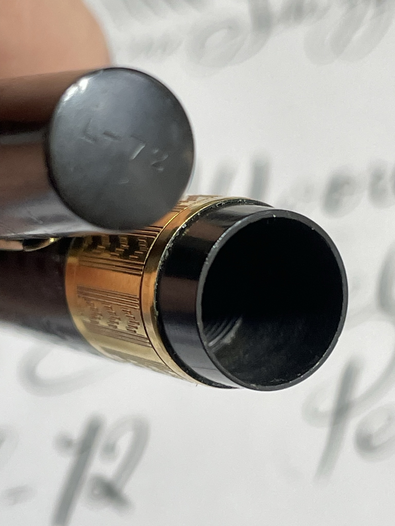 Per la datazione del mio esemplare, azzardo un’ipotesi a partire dalle incisioni, dal fatto che sia a levetta e dalle date dei brevetti e dico che la penna dovrebbe essere del 1920-21 o forse 1922, se l’azienda aveva l’abitudine di riutilizzare pezzi (come la Parker!). Se qualcuno ha altre piste ...