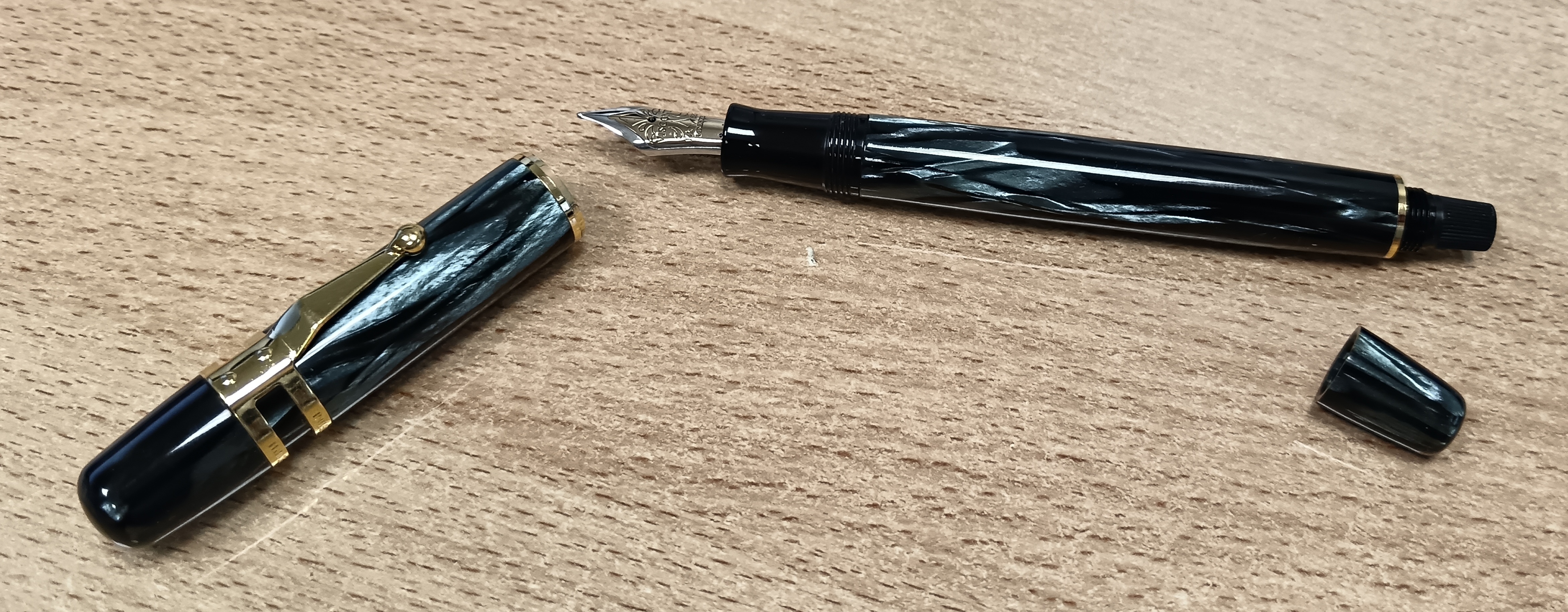 Complice questa discussione ho tirato fuori la mia: qualche goccia d’inchiostro trafila sempre dal fondello e con un pennino 18k decisamente stitico per i miei gusti.