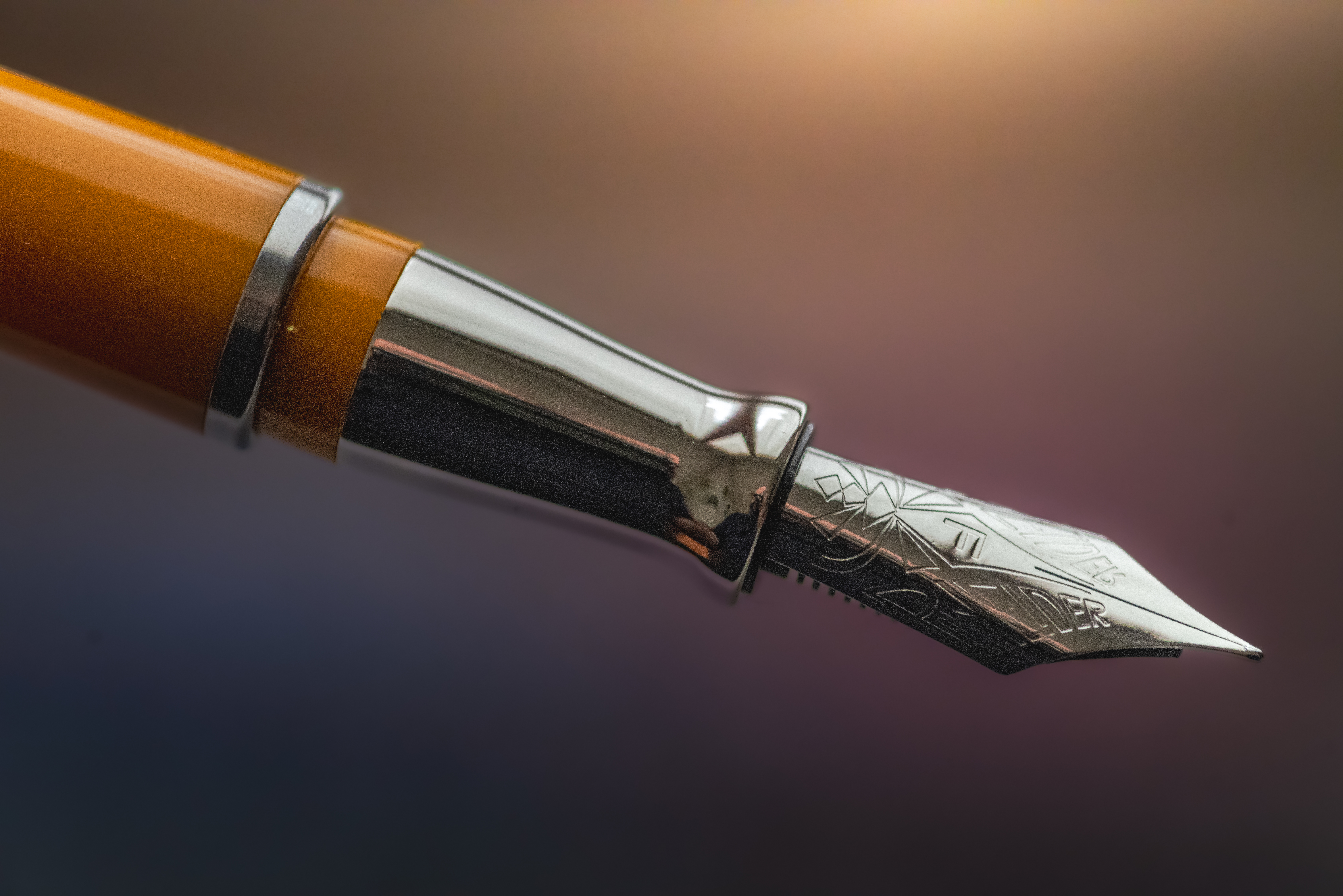 Ho apprezzato la grandezza del pennino e il suo rapporto dimensionale con le altre parti della penna, veramente tanto tanto tanto comodo da usare e gestire. A livello di scrittura, invece, non mi ha particolarmente stupito: non dà alcun problema (almeno per le tre pagine che ho scritto, più un disegnino), ma anche in questo caso da una penna che costa da 10 a 200 volte le altre penne che ho, mi aspettavo qualcosa in più; mentre questa ha perfino qualcosa in meno (l'attrito di scrittura in qualche movimento è un pelo troppo per i miei gusti).