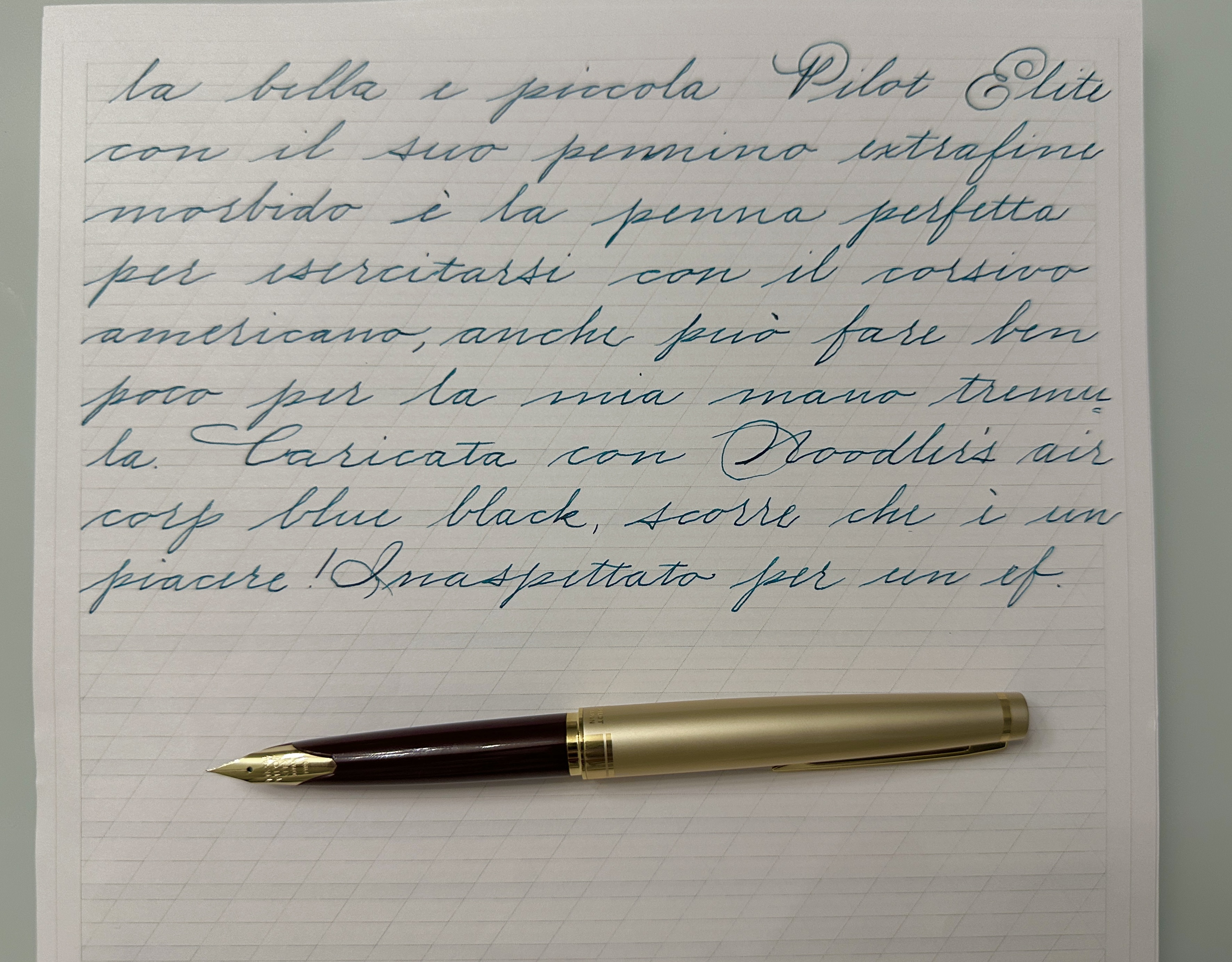 Rimango comunque dell'idea di rimanere su un pennino EF, con un flusso che non deve essere troppo "esitante" ma neanche troppo copioso: a prendere appunti ci vuole un tratto sicuro e che regga la scrittura veloce.