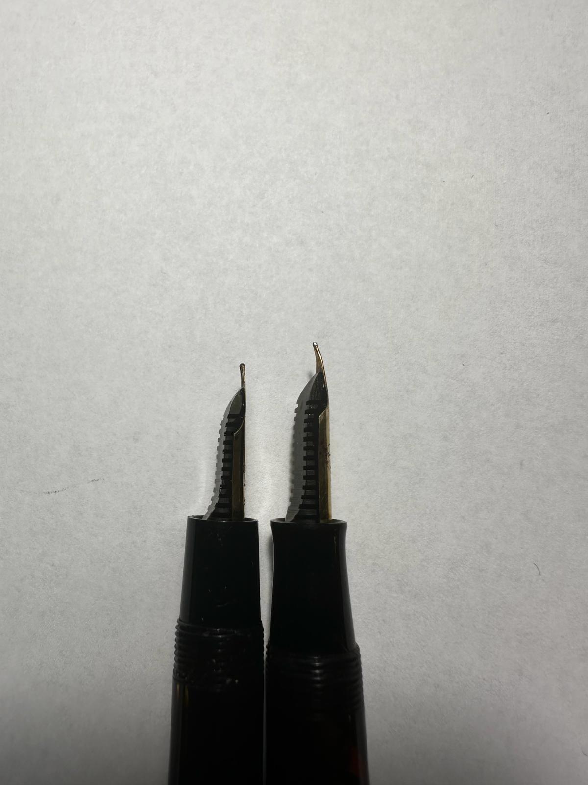 Più interessante è la questione pennino. Molti avevano notato una eccessiva curvatura della punta. Ho mostrato le foto ad un esperto di pennini e mi ha confermato che la curvatura è eccessiva, non quella ottimale.