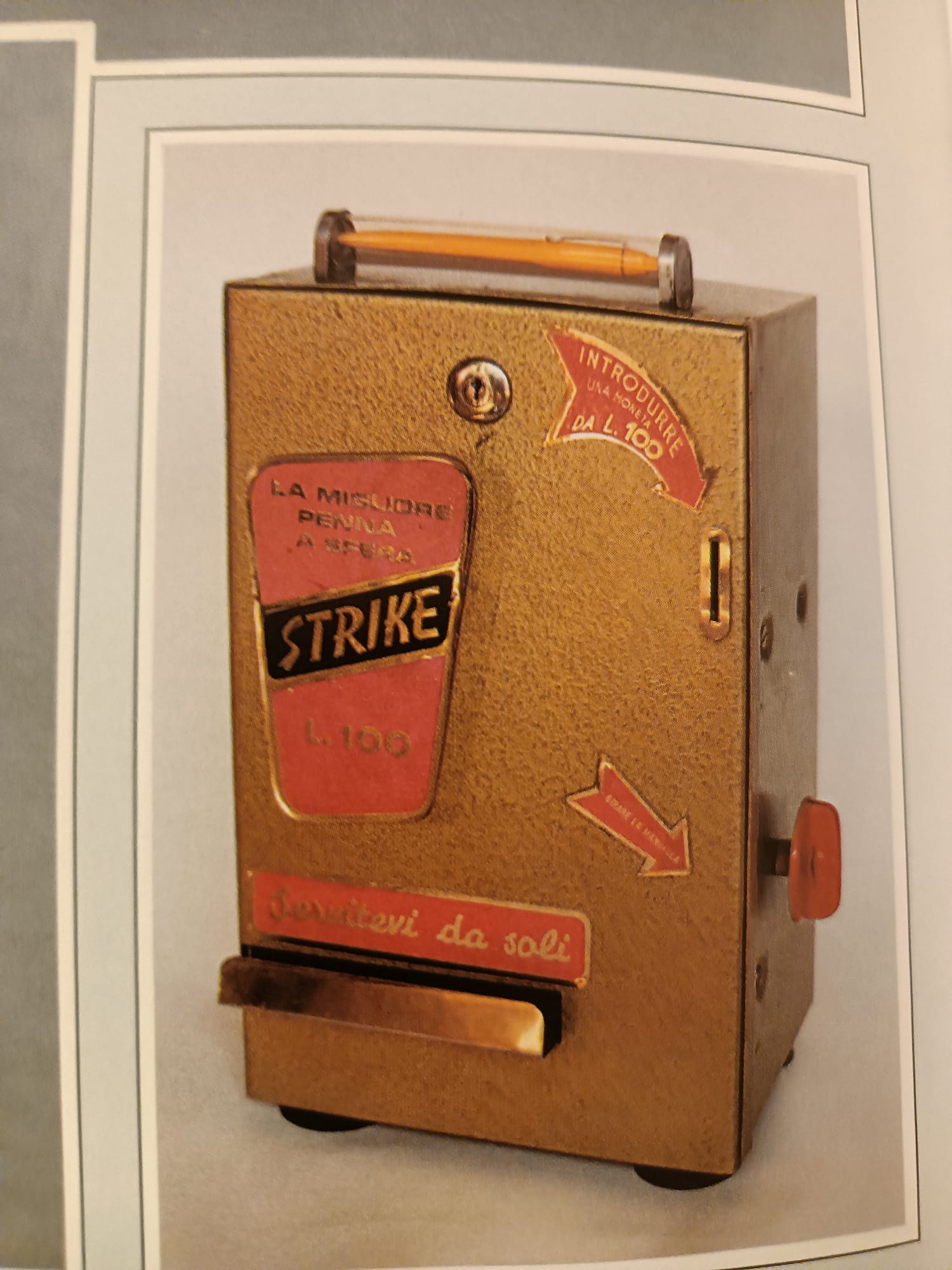 Anche la penna gialla a clicclac del distributore me la ricordo, ma non il distributore. O non si usavano più, oppure c'erano solo nelle città. Non ho mai visto nemmeno quelli della LUS.
