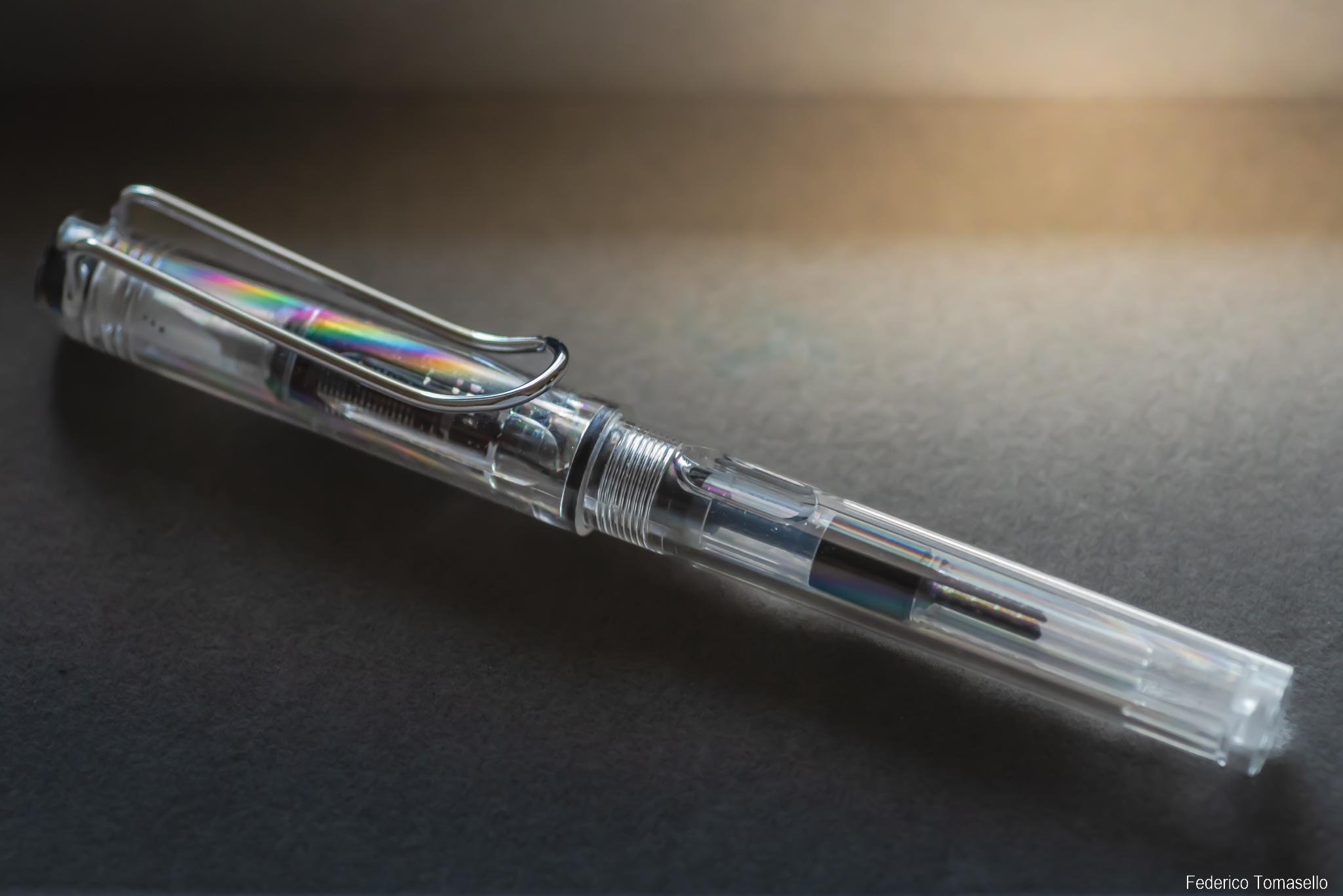 Questa penna mi è stata inviata come omaggio dal venditore da cui ho acquistato gli inchiostri Ostrich della serie "Sheen"; è una penna non marchiata, in versione demonstrator, evidente clone di una Lamy Safary. Pennino EF e converter inclusi nel non-prezzo.
