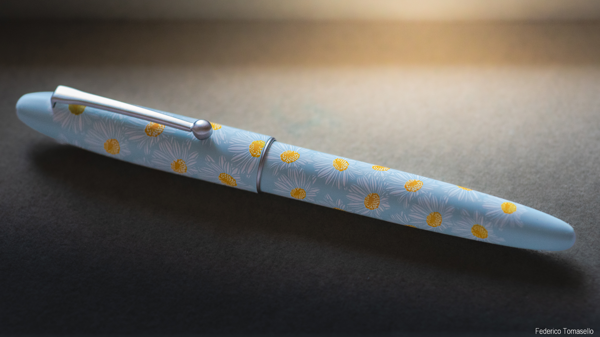 Peccato che la sorella dalla livrea gialla con i girasoli sia esaurita (almeno a prezzo di saldo), perché avrei preso volentieri pure quella per mero piacere estetico (e per vedere se il pennino di questa ha qualche difetto).