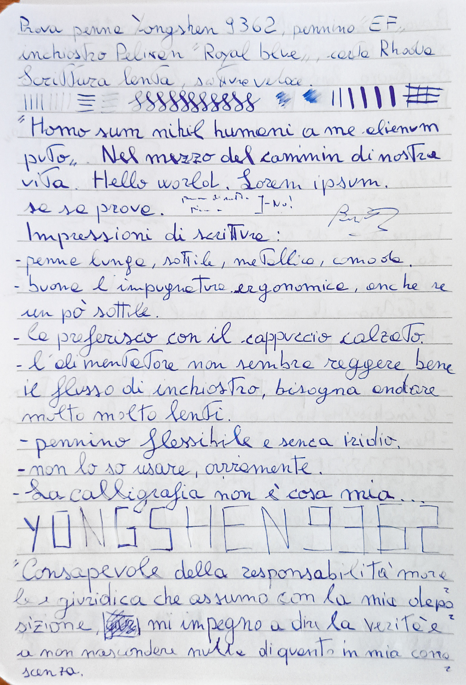 Al di là dell'aspetto, la Youlian 2000 scrive MERAVIGLIOSAMENTE, è entrata di prepotenza nella top 3 delle mie penne che scrivono meglio. E probabilmente si è affiancata alla Jinhao 9019 (rispetto alla quale la Youlian scrive comunque un pelo meglio, a mio gusto...) come mia penna preferita in generale e sotto tutti i punti di vista.