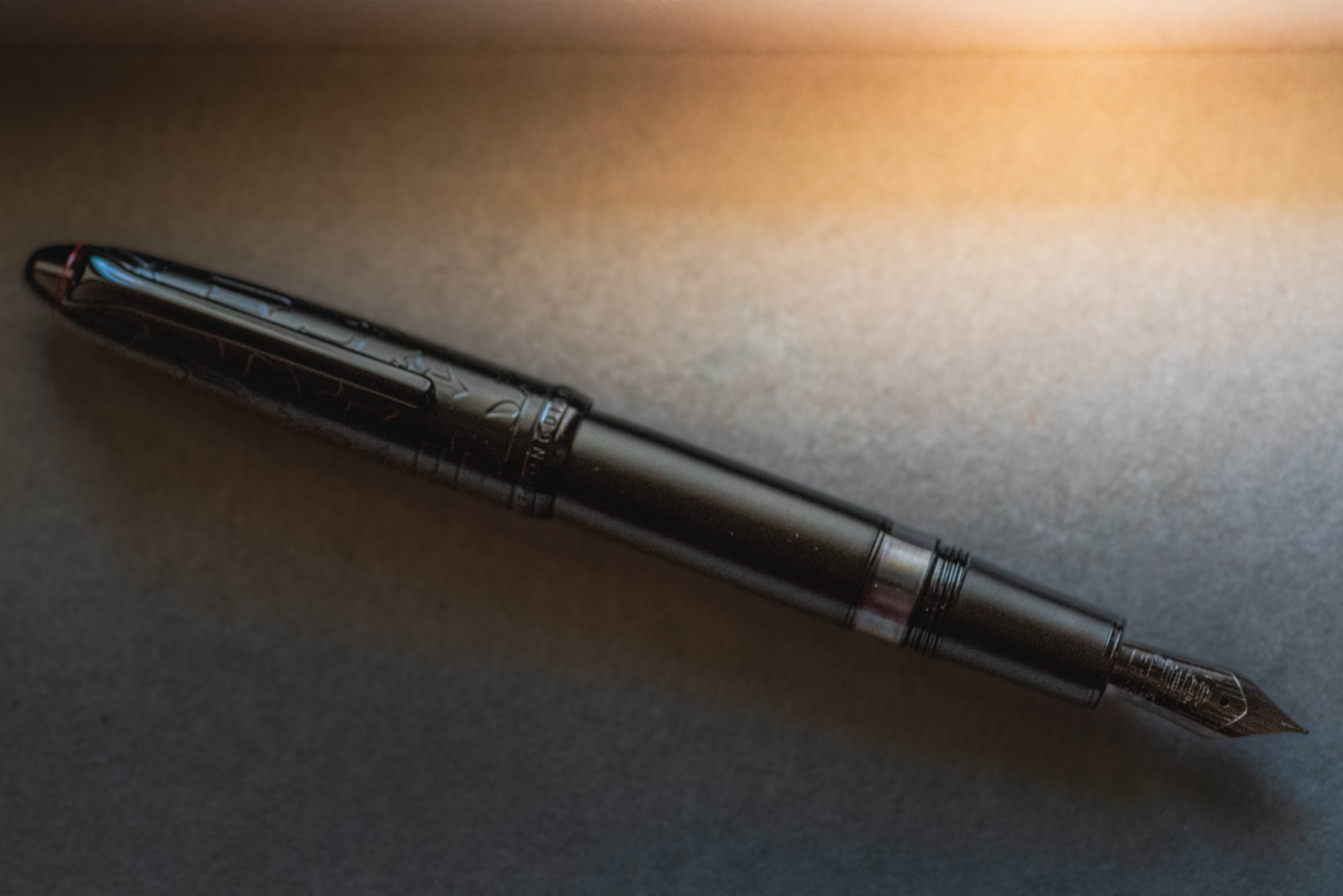 Era una penna, con caricamento a pistone, di cui avevo letto e sentito benissimo nelle varie recensioni. Una volta scelta sotto i 25€, mi sono deciso ad acquistarla per vedere se le meraviglie decantate corrispondessero a realtà. Per l'occasione l'ho caricata con il nero Aurora, che non avevo mai provato prima.