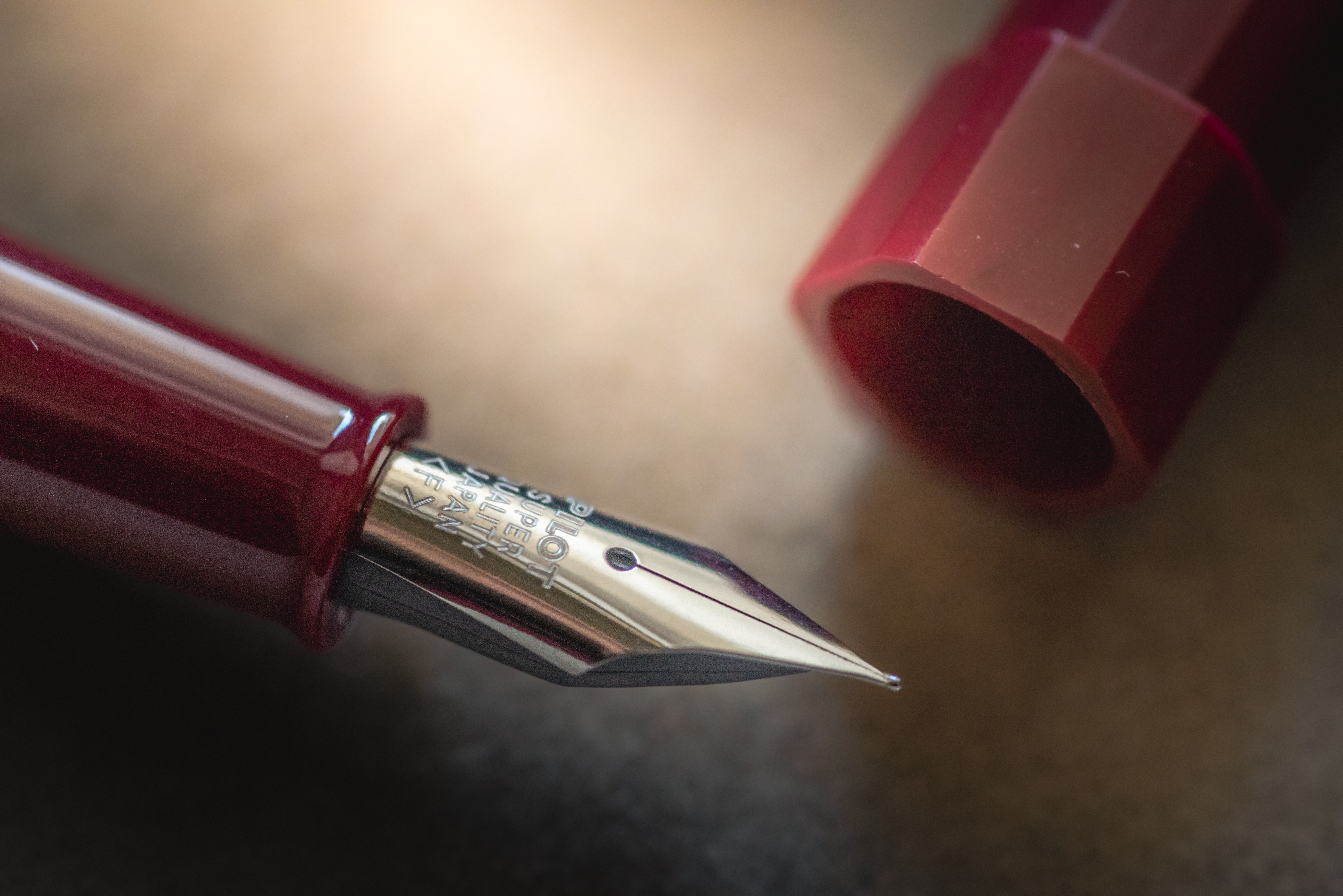 Ancora una volta le recensioni lette e viste in giro si sono rivelate veritiere: il pennino scrive eccezionalmente bene. Pur essendo un po' secco per i miei gusti (ma assolutamente scorrevole e senza problemi di flusso, caricato con un economicissimo Karkos Bordeaux), questo è in assoluto il pennino più "controllabile" di quelli in mio possesso. Fa esattamente i segni che voglio, dove li voglio. Prima di provarlo non mi ero accorto di quanto fossero più erratici altri pennini che pure mi soddisfano.