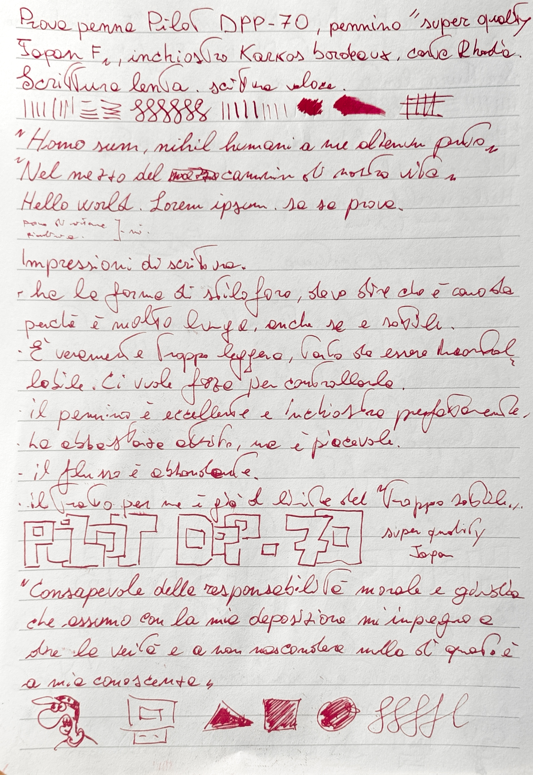 Avevo comunque sentito parlare molto bene del pennino Pilot "Super quality" e questa penna, per 9€, mi ha permesso di provalo (in versione "F").