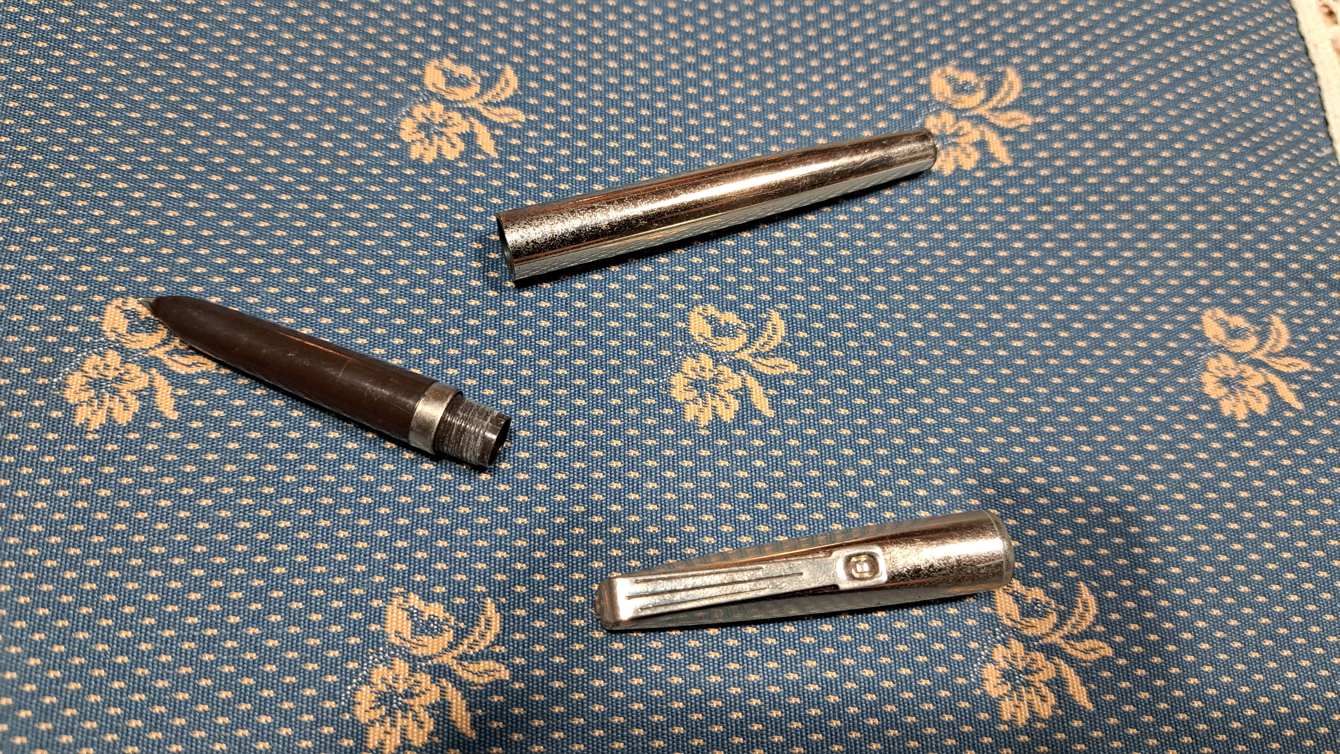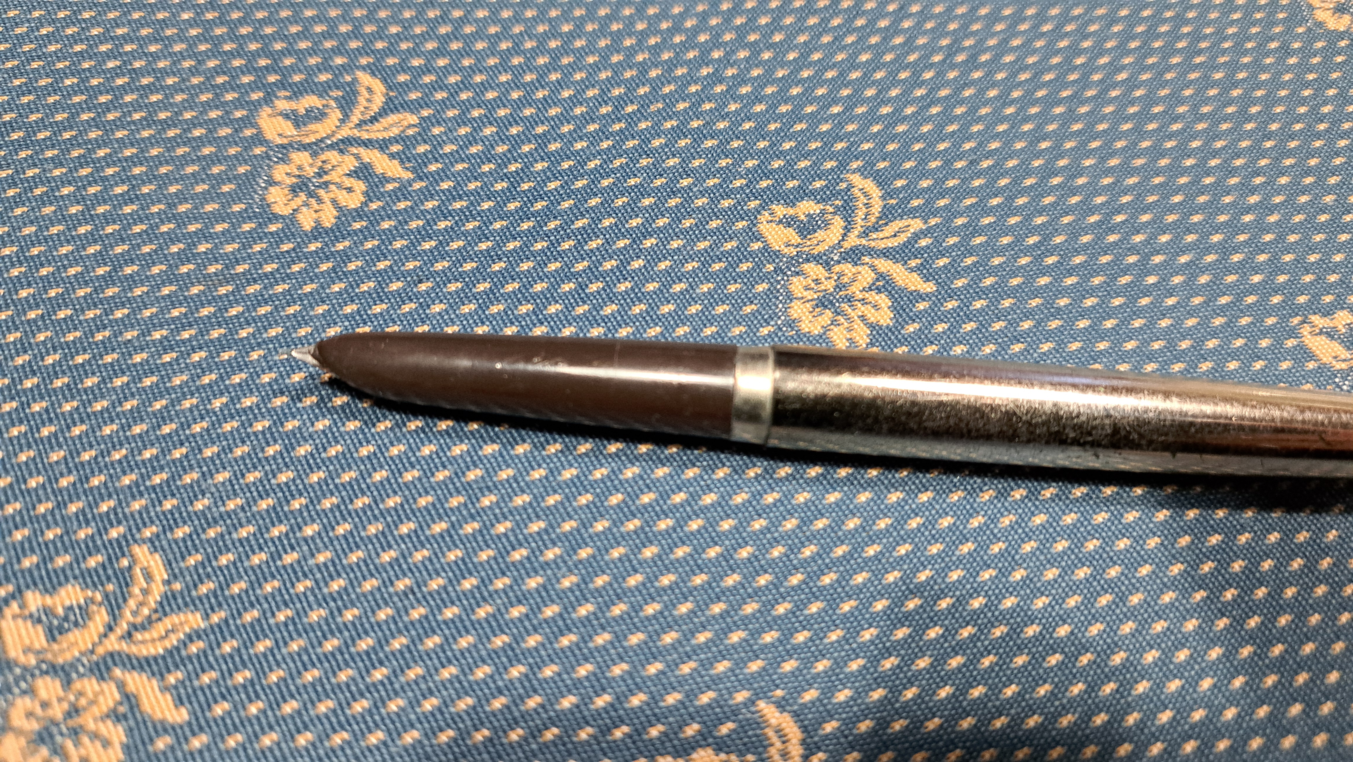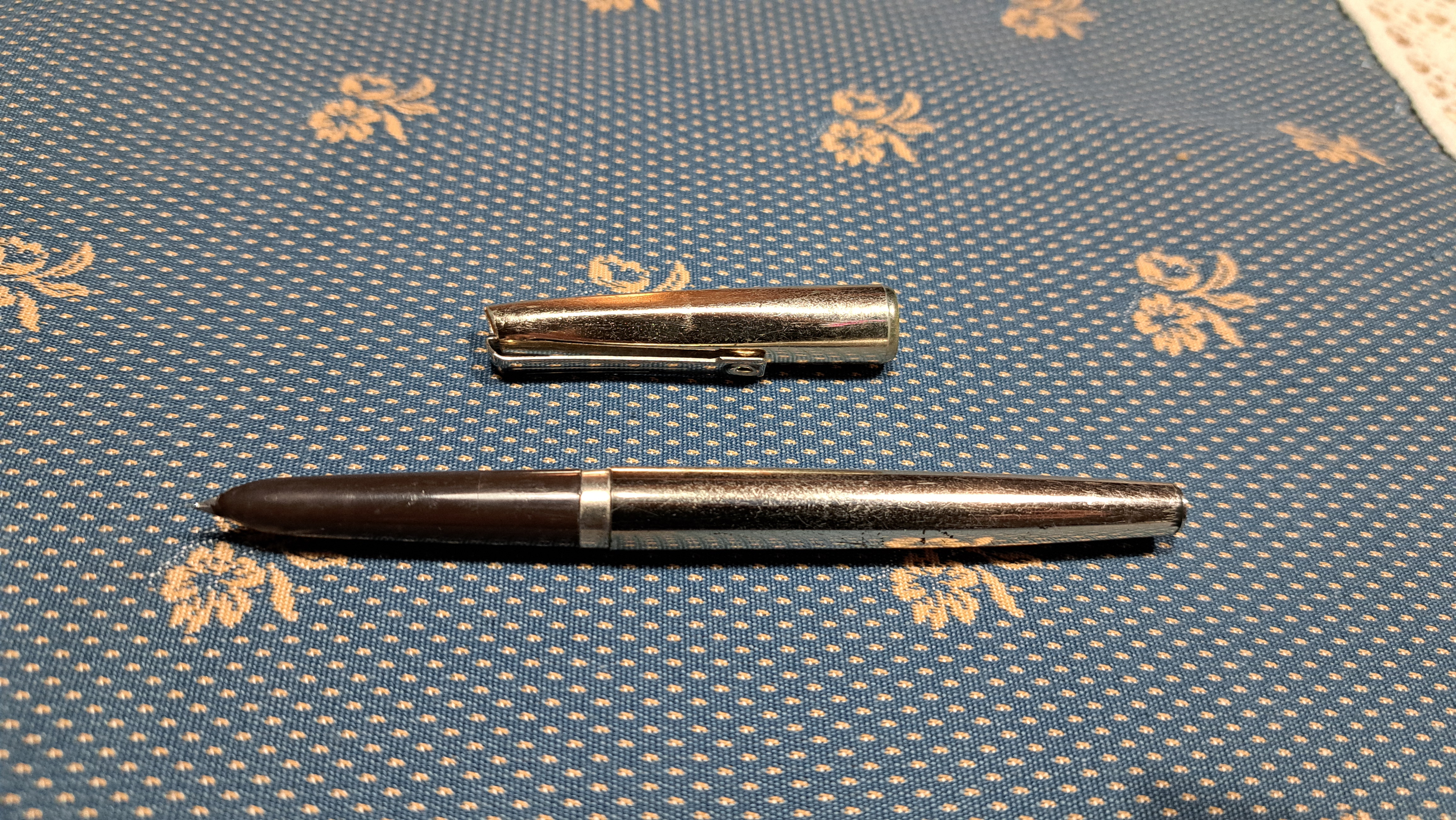 Pochi giorni fa mia madre mi ha portato una sua vecchia stilografica: a quanto ricorda è arrivata negli anni '80 in un set regalo stilo + biro, ma non riesce a ricordare il marchio (non c'è nessuna scritta o simbolo).