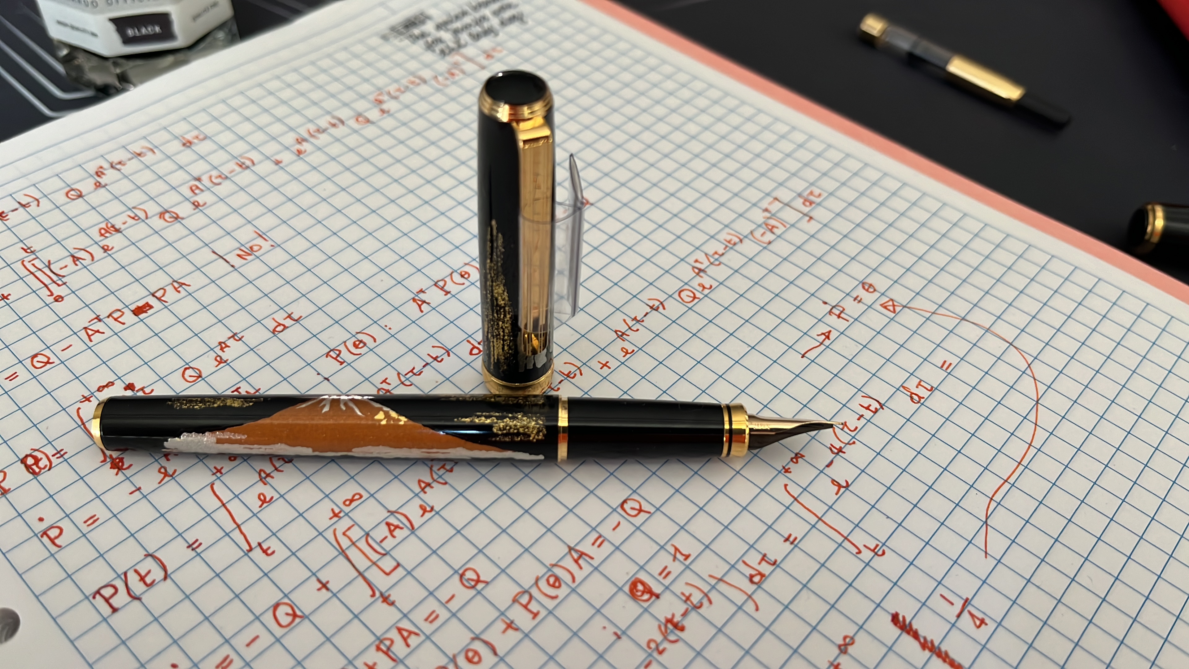 Secondo me merita, come ti dicevo la penna è in resina nera, sulla resina ci dovrebbe essere uno strato di lacca (non sono sicuro sia Urushi), è sulla lacca è serigrafato il Monte Fuji. La sensazione è quella di una penna di buona qualità (anche le dorature sembrano robuste) con in buon pennino d’oro (meno sottile degli standard giapponesi ma estremamente scorrevole e con un buon flusso.