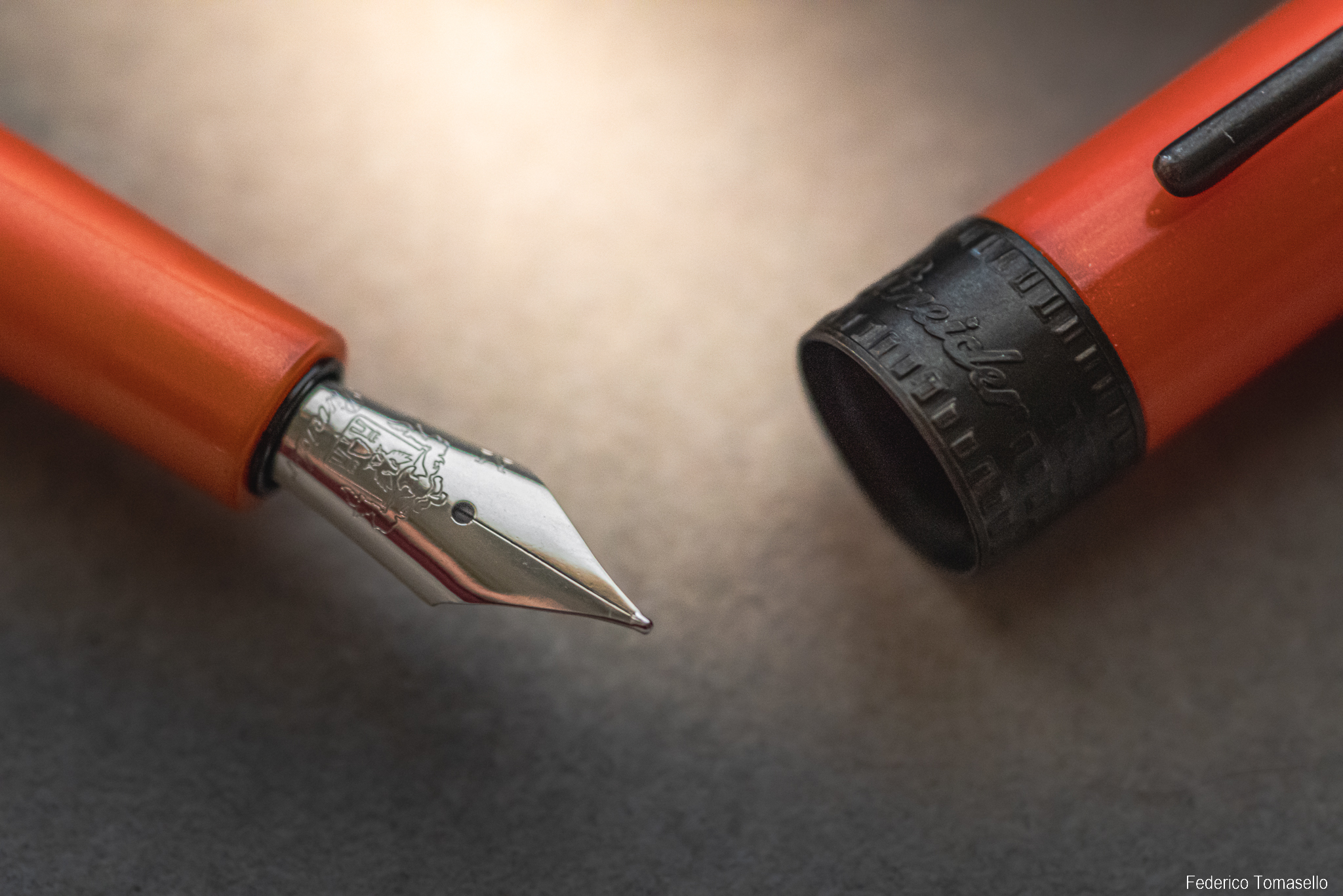 La penna è bella e maneggevole, ovviamente con il cappuccio calzato. Scrive molto bene, è gradevole e piacevole.