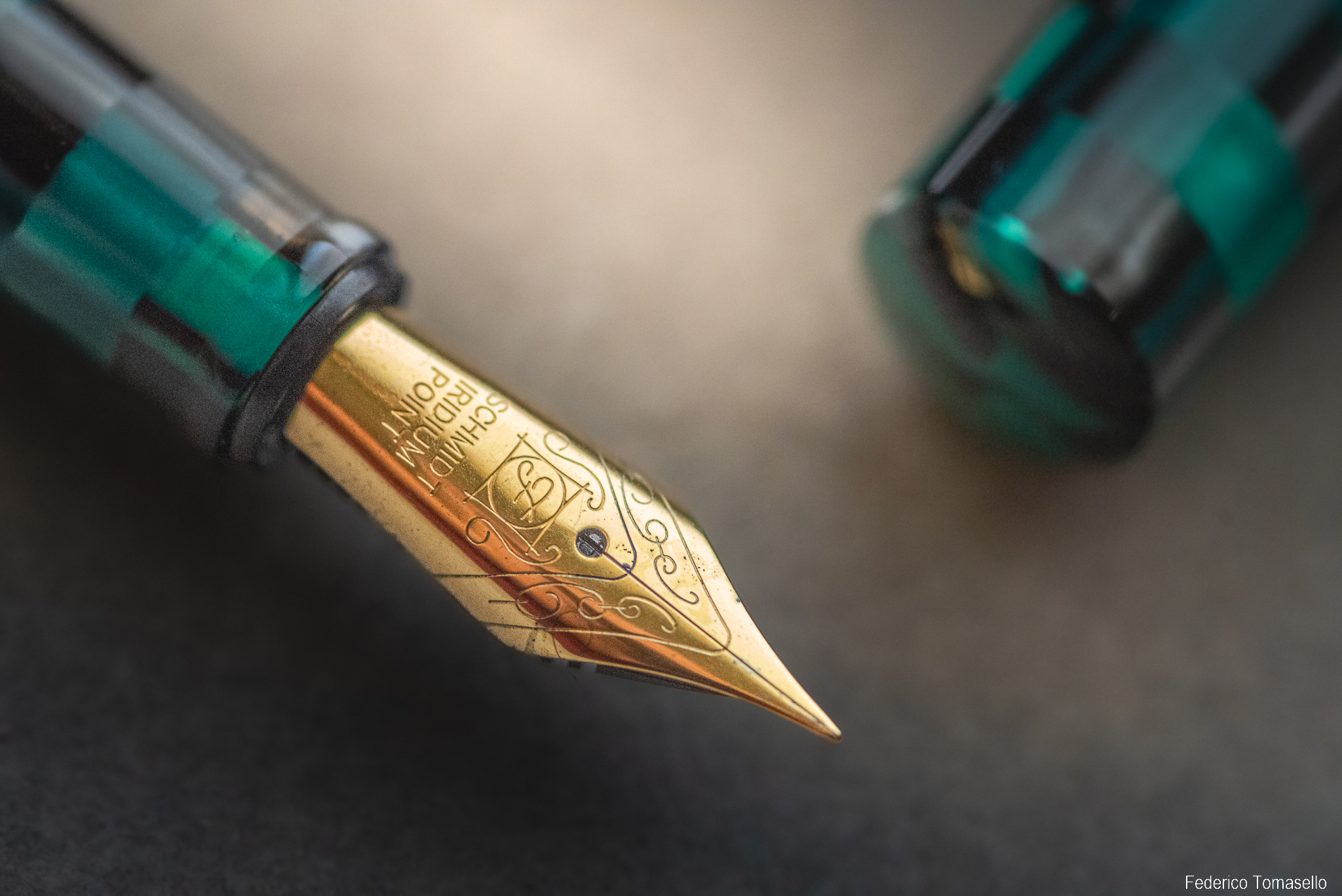 Il pennino Schmidt invece è ottimo, ma un po' troppo "scivoloso" per i miei gusti; sicuramente è tra i migliori in mio possesso, ma non entra nella top 3 per gusto personale (Youlian 2000, Jinhao 9019 e Asvine P20 per ora sono sono in testa, con la Hero 329 che si gioca il terzo posto; ma molte penne vorrei provarle con inchiostri diversi, perché all'inizio avevo solo il 4001).