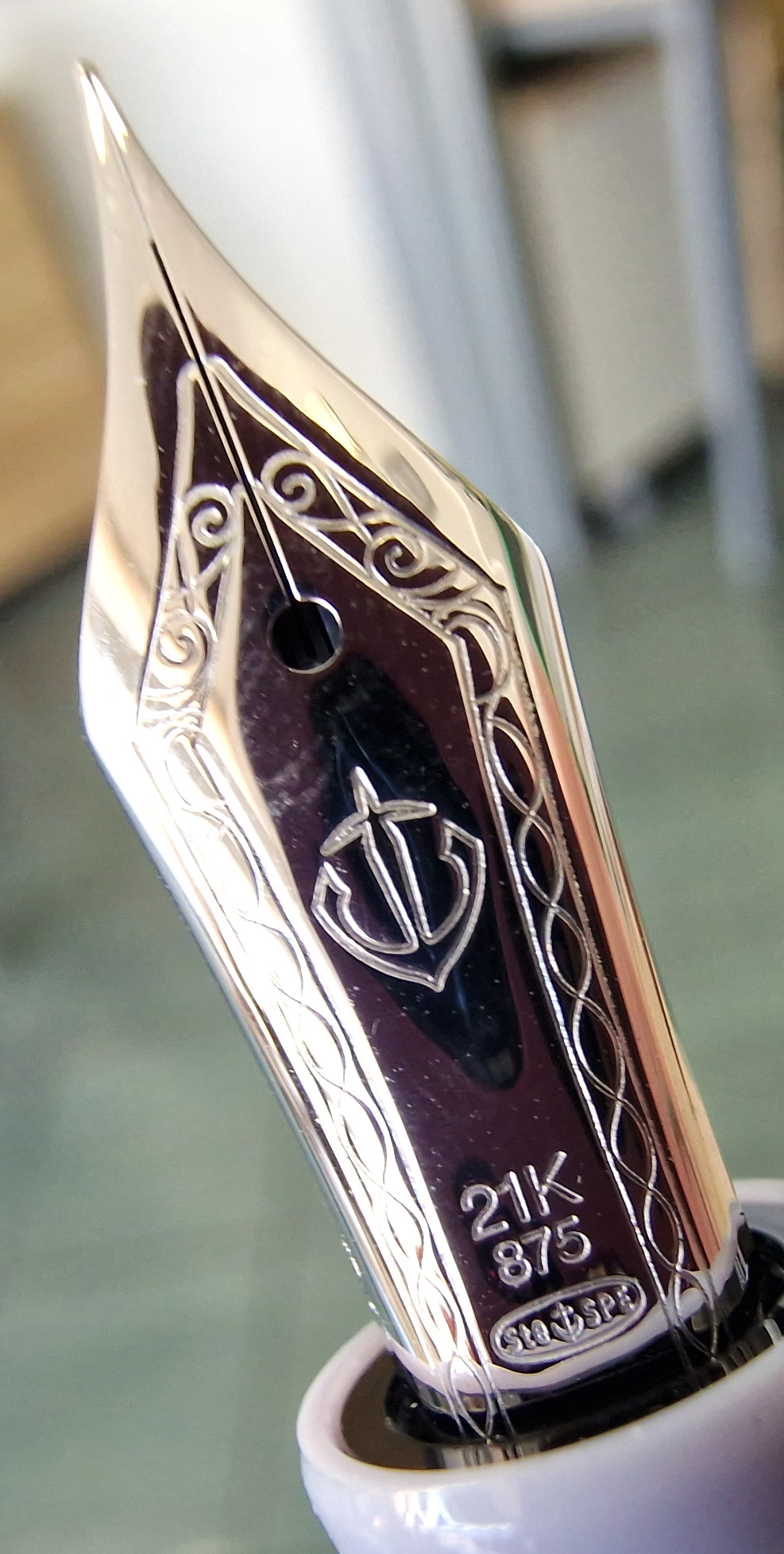 E' una questione di inclinazione e pressione: con il mio pennino a un'altezza di circa 50 gradi e rotei poi a ore 10 vedrai arriva una specie di sweetspot la mia inchiostrata con la myosotis diventa davvero scorrevole in quella posizione , più della mia EF platinum.