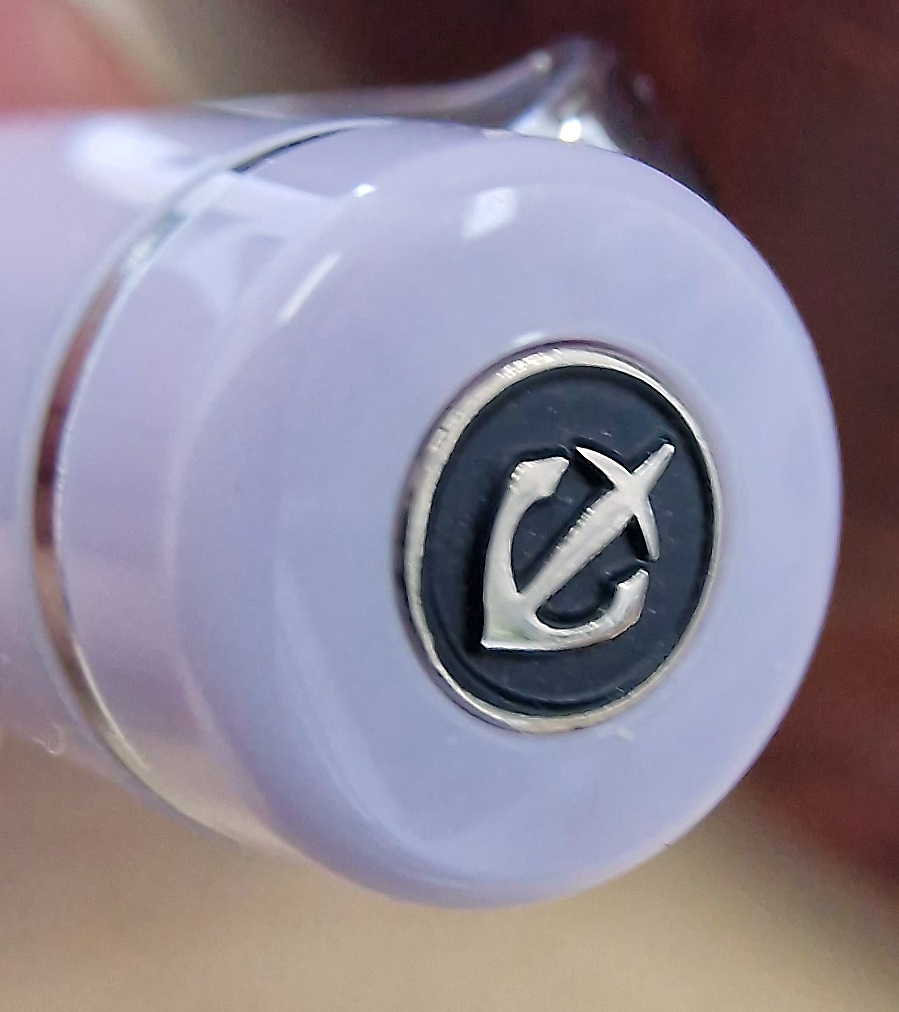 Si può faticare a vederlo ma è un modello bicolore: il fusto è un grigio tenue tendente al lilla. Il finish è lucido, la resina ha minuscoli glitter, molto difficili da vedere anche da vicino. Sembra stata solo finemente spolverata, più che essere davvero glitterata.