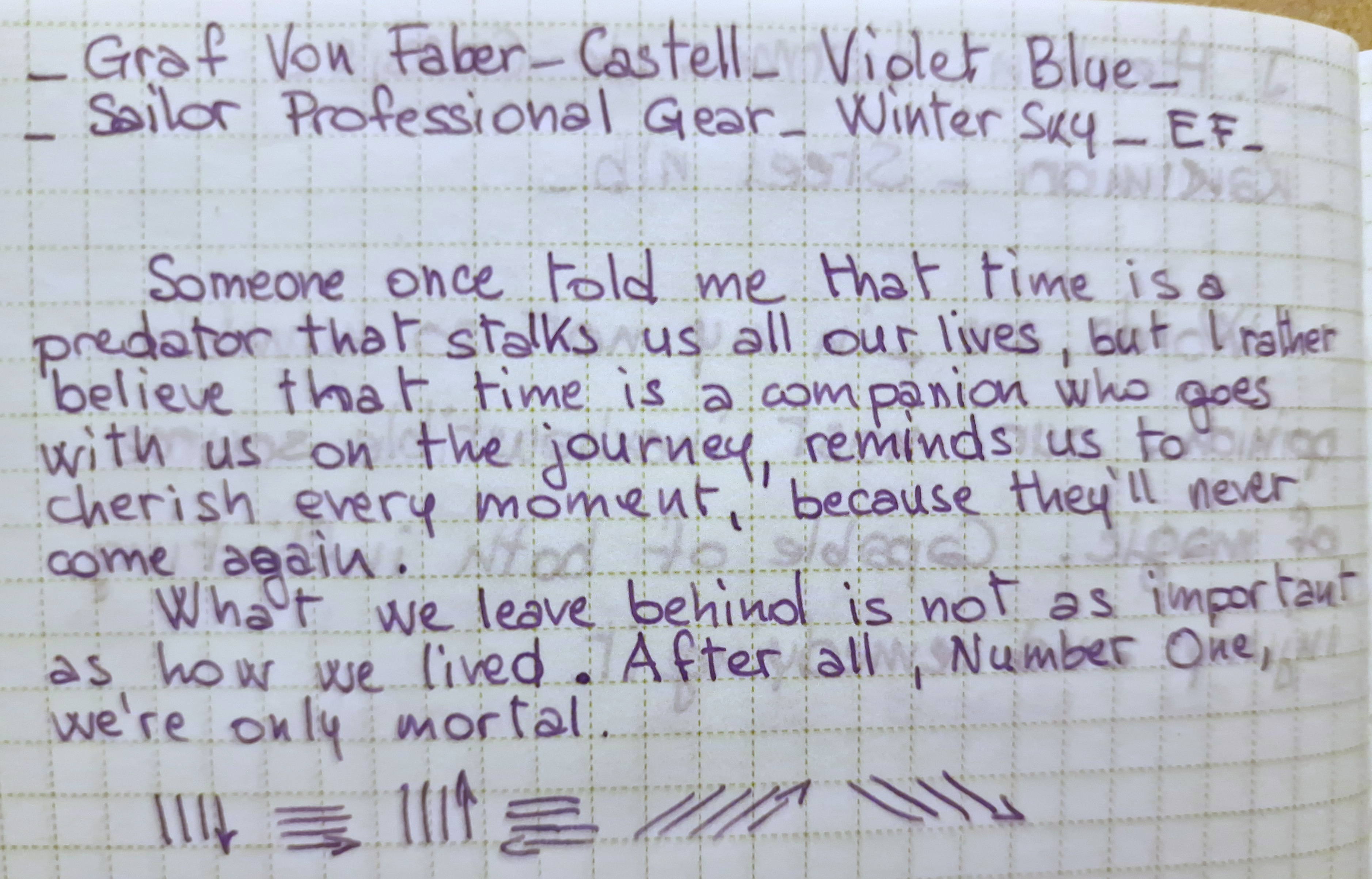 Per inchiostrarla ho scelto il Graf von Faber-Castell Violet Blue, uno splendido violetto chromashading.