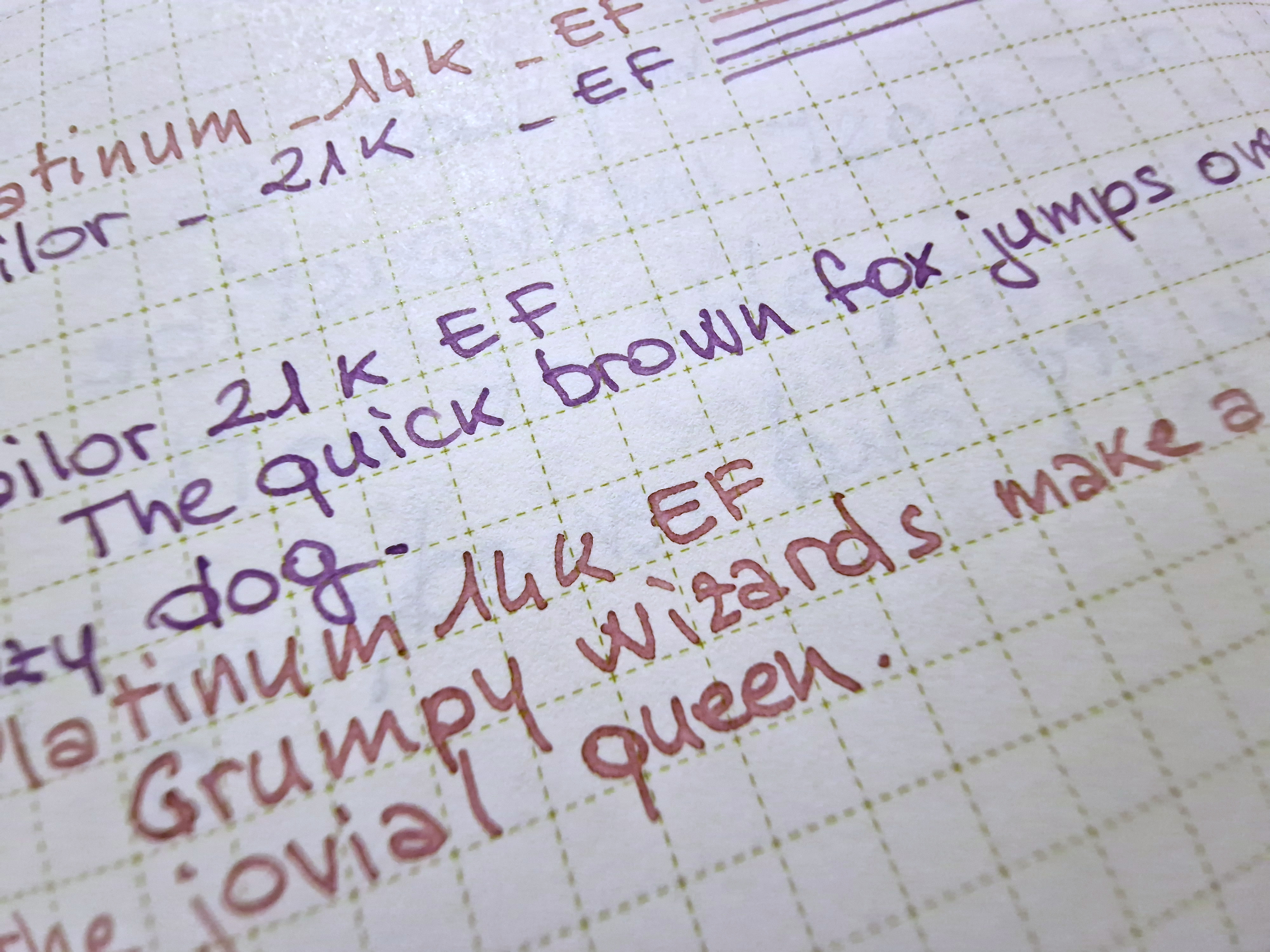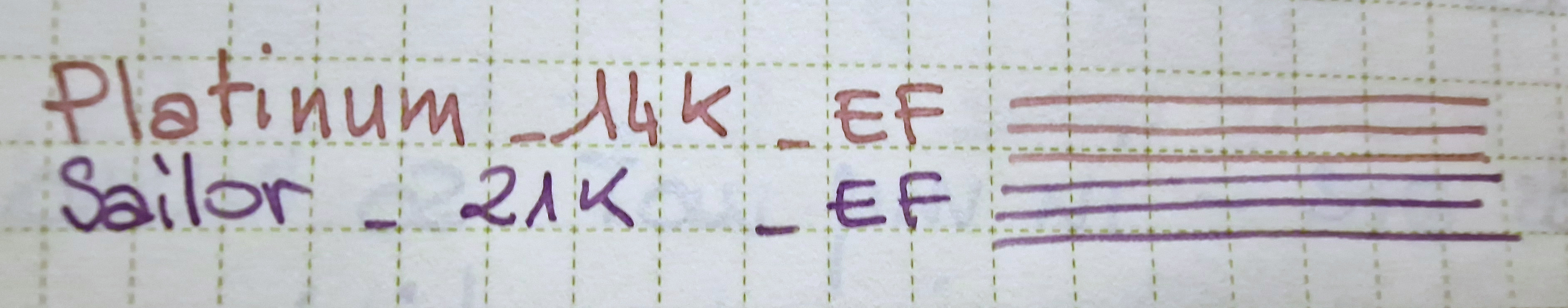 Ho deciso di mettere a confronto i due pennini extra fini giapponesi in oro che ho con qualche esempio di scrittura parallela. Non vedo particolari differenze. Quelle che ci sono, molto probabilmente, sono date più dalle differenze negli inchiostri usati.