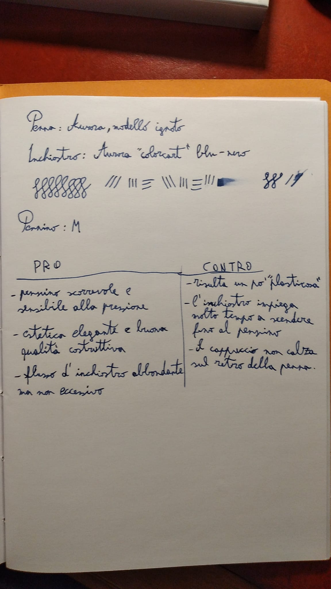 Ecco una prova di scrittura da me fatta con l'inchiostro Aurora color cart blu nero (perdonate la grafia