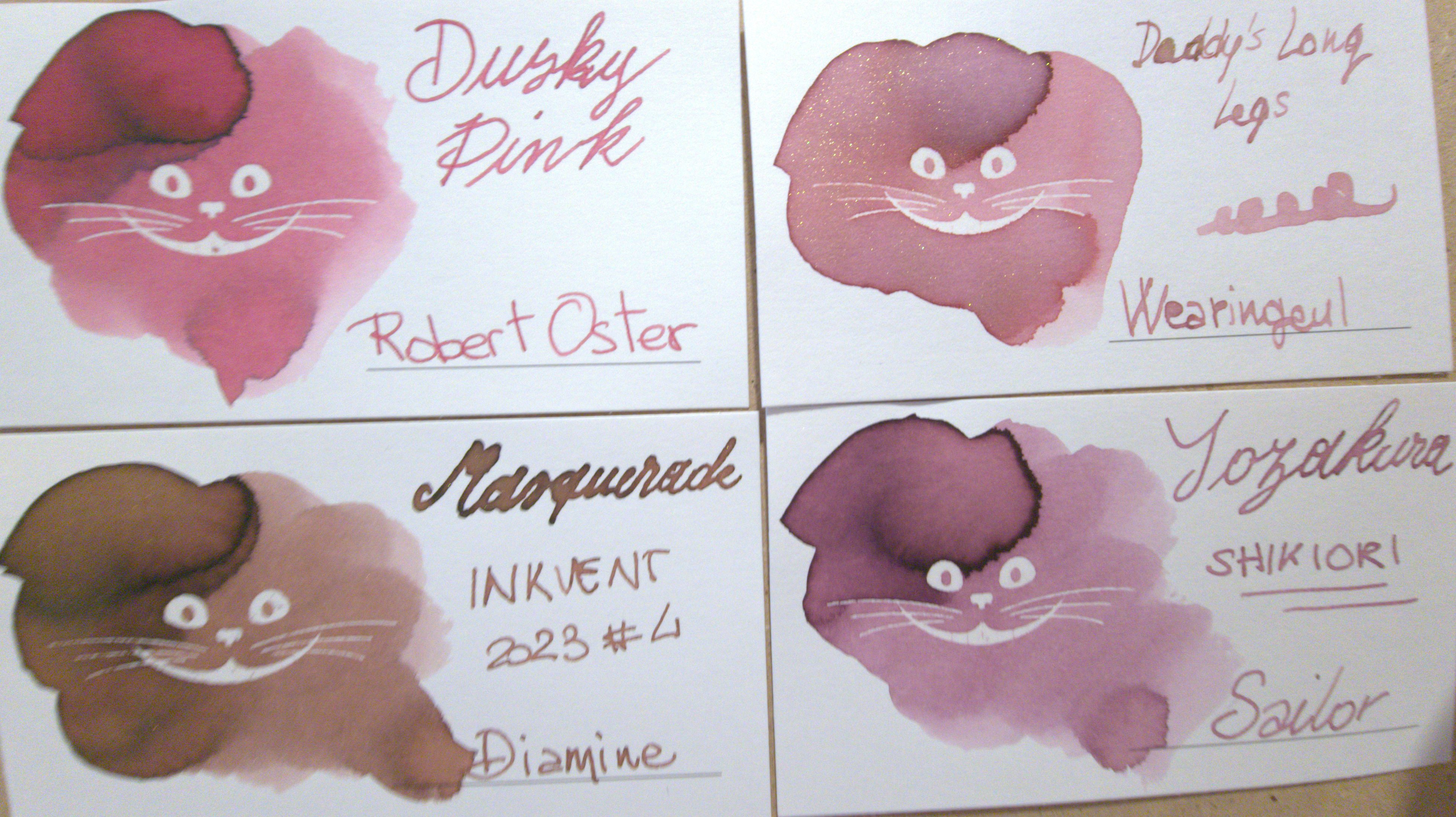 Qui sopra, il confronto con Yozakura. Sono due mondi diversi. Yozakura ha un sottotono freddo, a volte potrebbe passare per un lilla (non lo è, è un rosa ma di fianco ai rosa caldi pare quasi lilla), è più chiaro, più desaturato. Non ho idea di come - per alcuni - possa essere una specie di duplicato di Dusky Pink. E' lampante che l'inchiostro che hanno in mano altri non è quello che ho in mano io.