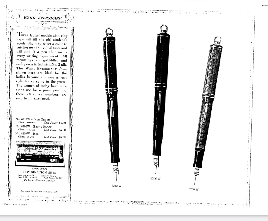 Se non vado errato , sul finire del 1928 le incisioni sull penne cambiarono da WAHL PEN a WHAL EVERSHARP (o comunque venne introdotta anche la dicitura EVERSHARP)