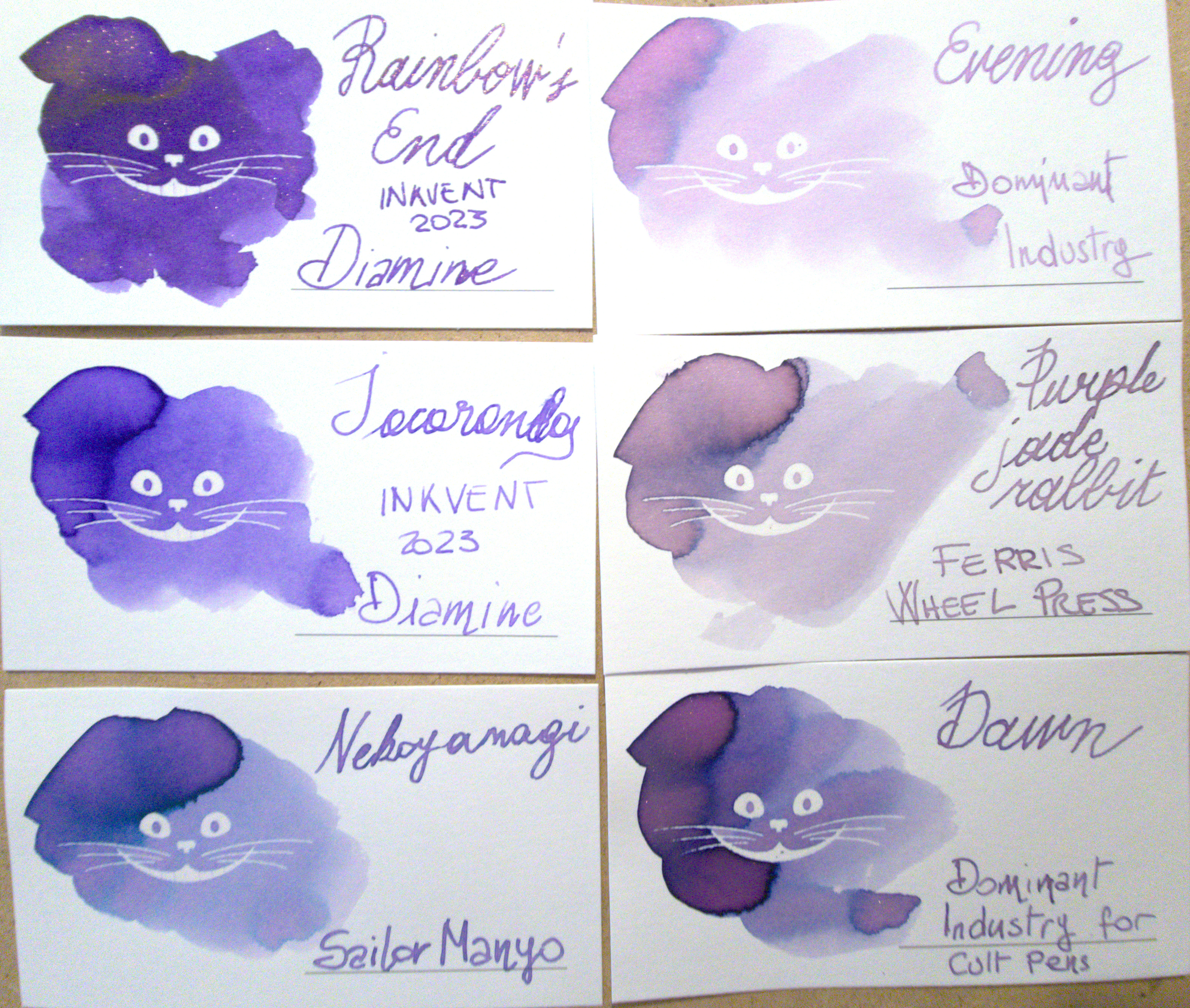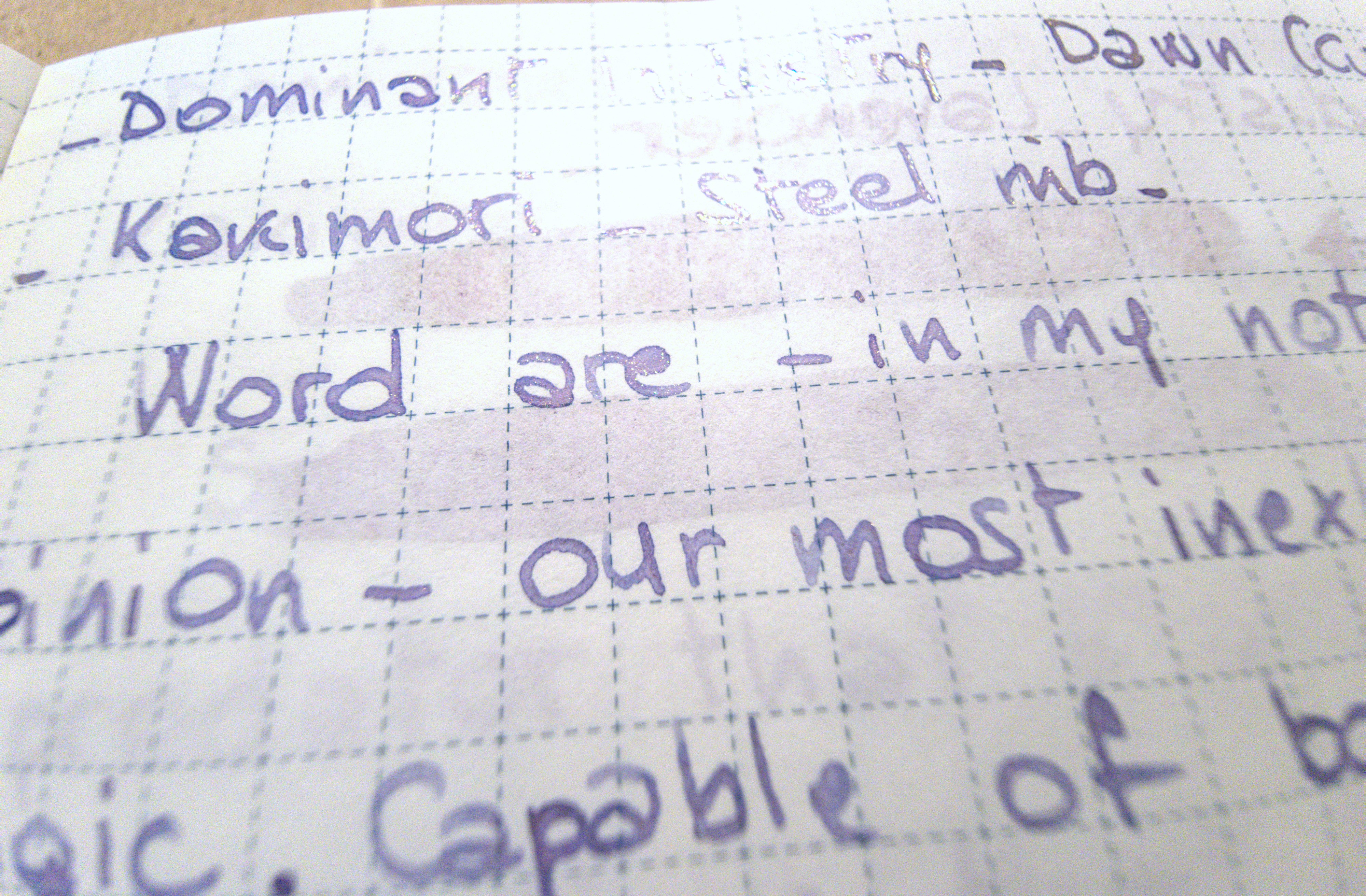 Tra altri viola che possiedo, la somiglianza è più vicina a Nekoyanagi, della linea Manyo di Sailor [QUI: viewtopic.php?t=32975 ]. Dawn è leggermente più caldo.