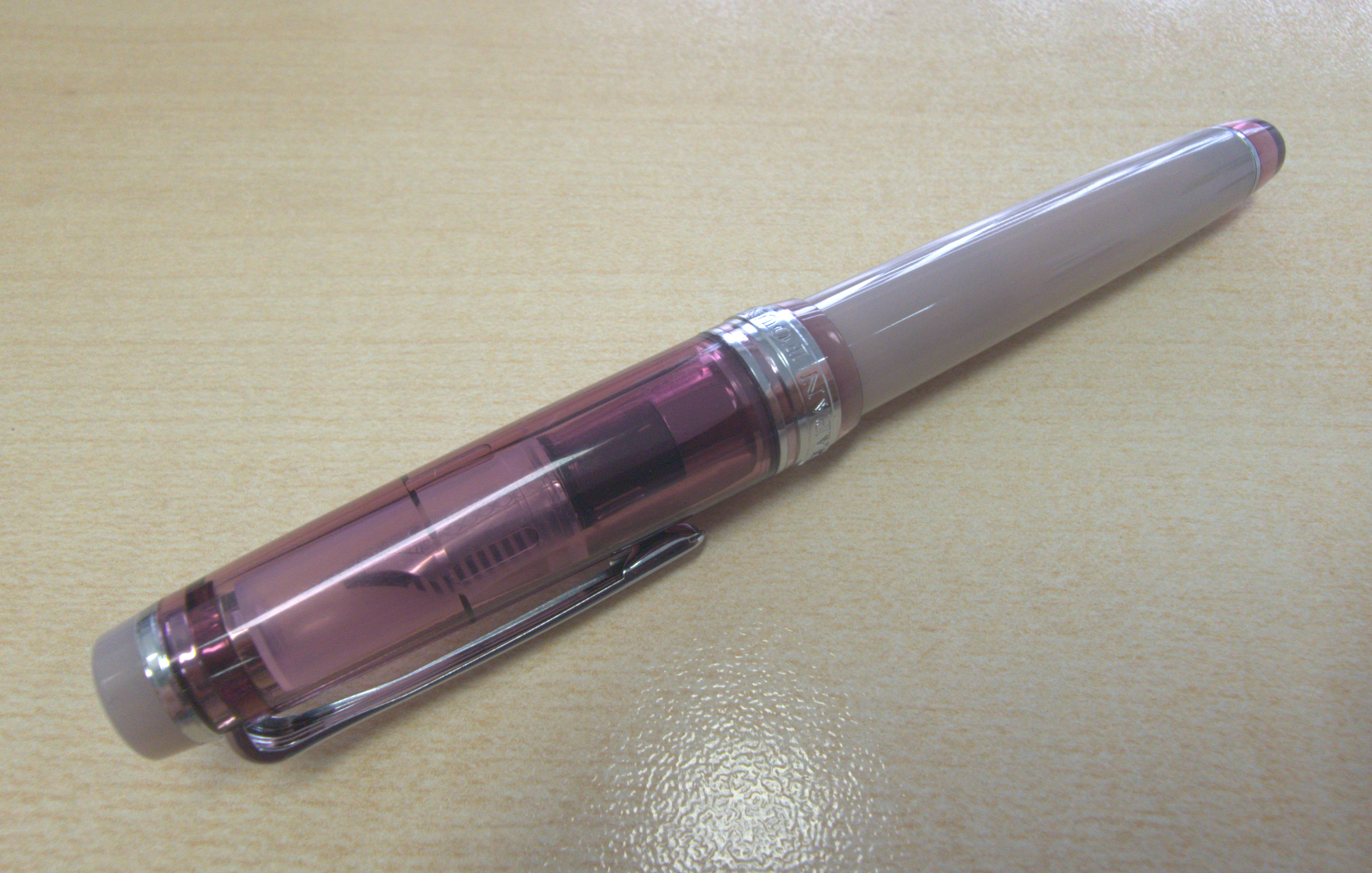 La Red Bean è una penna bicolore. Il corpo e il terminale del tappo hanno un colore beige rosato, finish lucido e non trasparente. Il colore è ispirato ad Aka-mai, una varietà di riso giapponese, di cui esiste il corrispondente inchiostro Manyo, non incluso in questo cofanetto (e di cui arriverà in futuro la recensione). Il tappo e il terminale del corpo sono trasparenti. Il colore è un viola caldo, questo a riprendere le tonalità dell'inchiostro Azuki [QUI: viewtopic.php?t=33217 ] fornito con la penna.