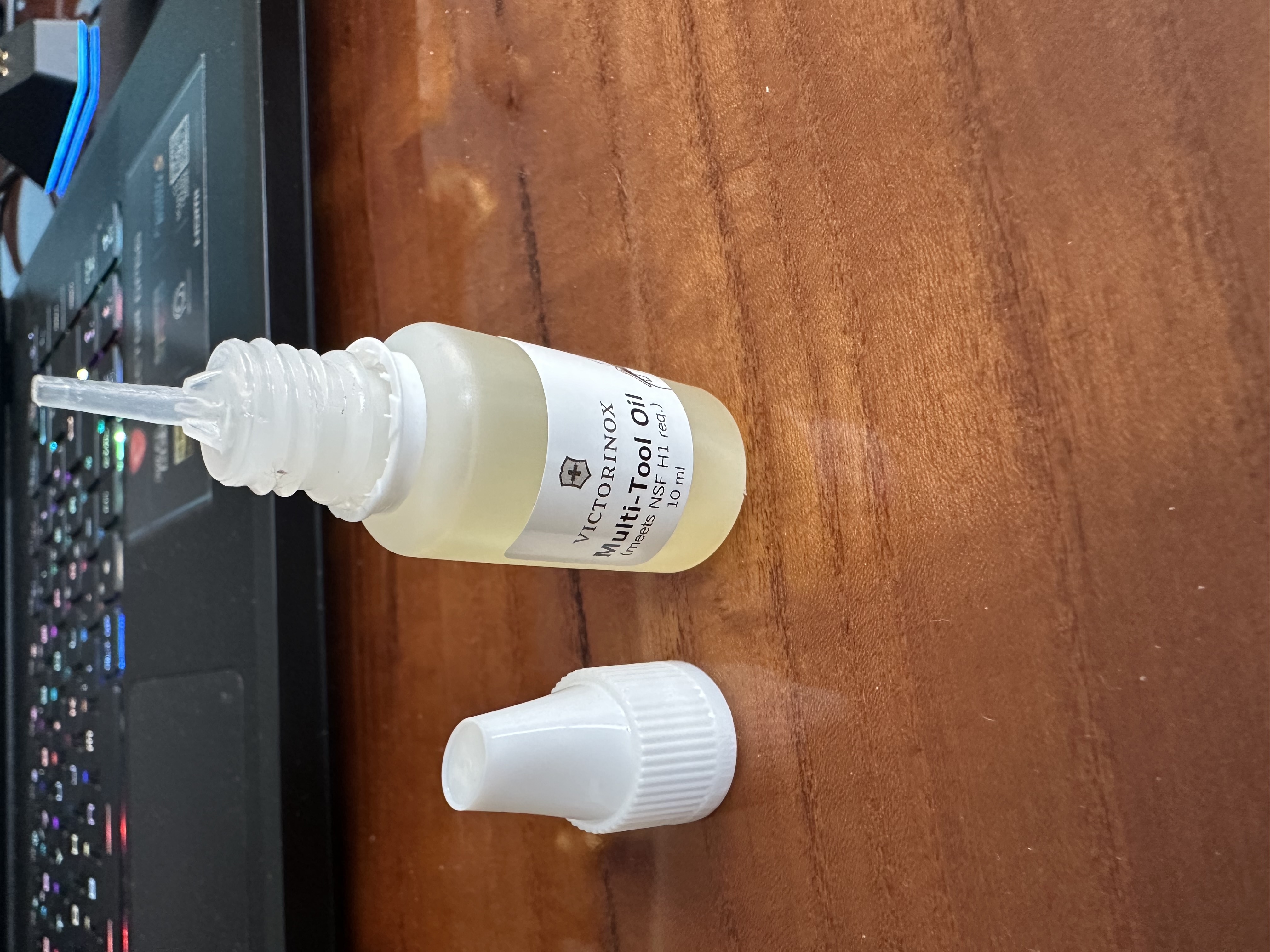 L'olio in questione sarebbe quello utilizzato per la manutenzione dei coltellini svizzeri, allego foto. Non dovrebbe rovinare nè resina nè ottone in quanto specifico per metalli e poi in quantità controllata.