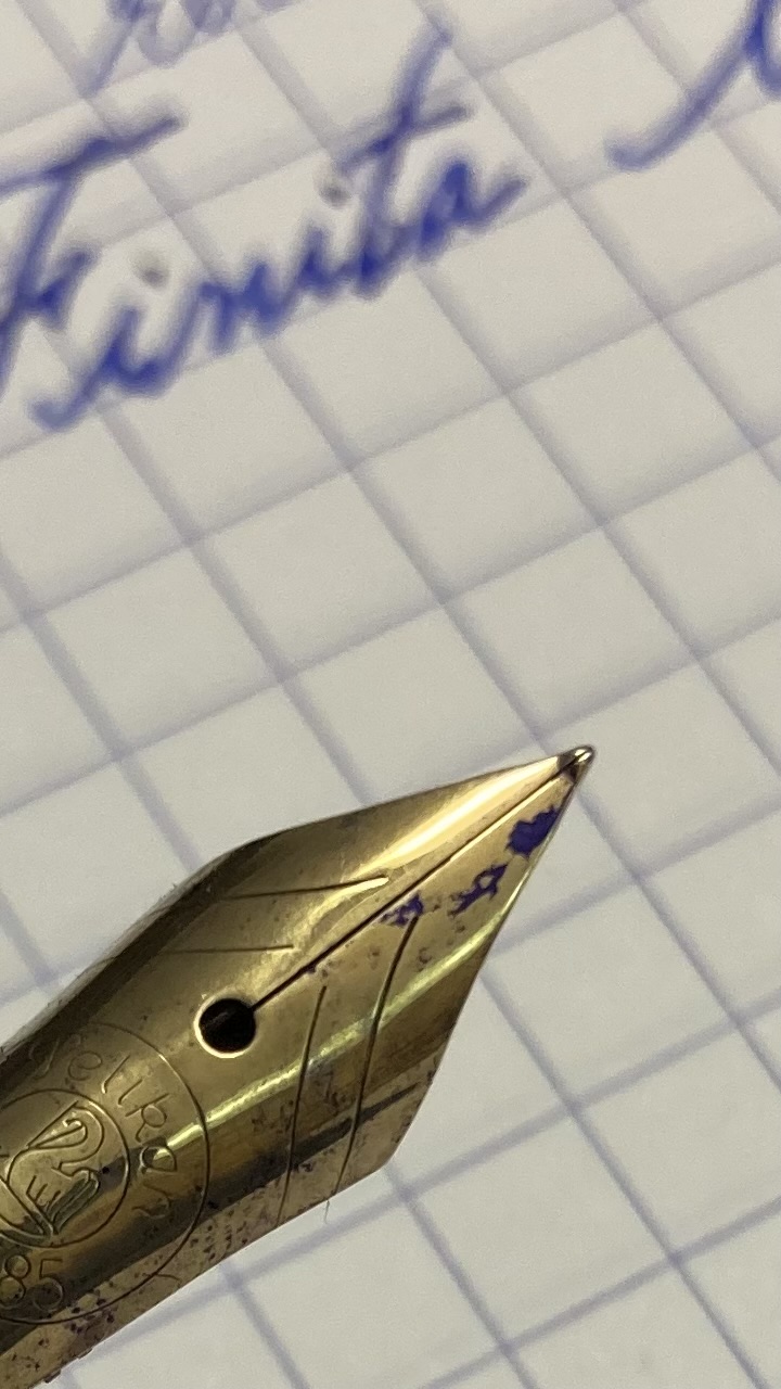 Penso sia probabile una leggera deformazione dei rebbi o almeno della punta, difficile da notare ad occhio nudo. Se si fosse discostato il pennino dall'alimentare era probabile una interruzione del flusso, ma come diceva Esme cè un equilibrio molto delicato tra i due pezzi.