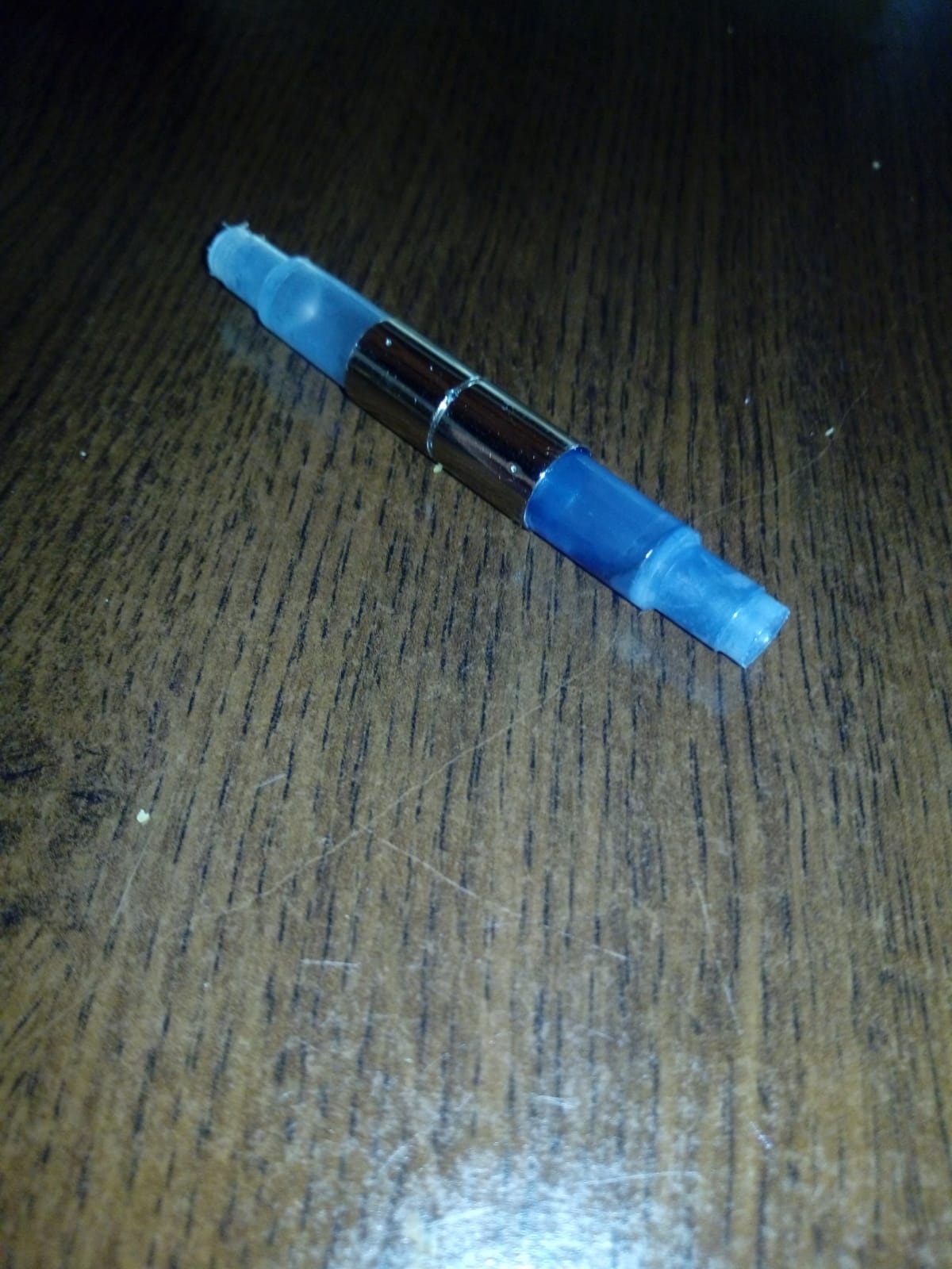 Ho fatto la foto, non si vede benissimo ma quella a sinistra è la mia che ho riparato e sulla destra i relitti che ho acquistato, compreso il pezzo su cui si innesta la cartuccia,sono circa 1 cm più lunghi dell'auretta e forse un paio di mm più grossi di diametro