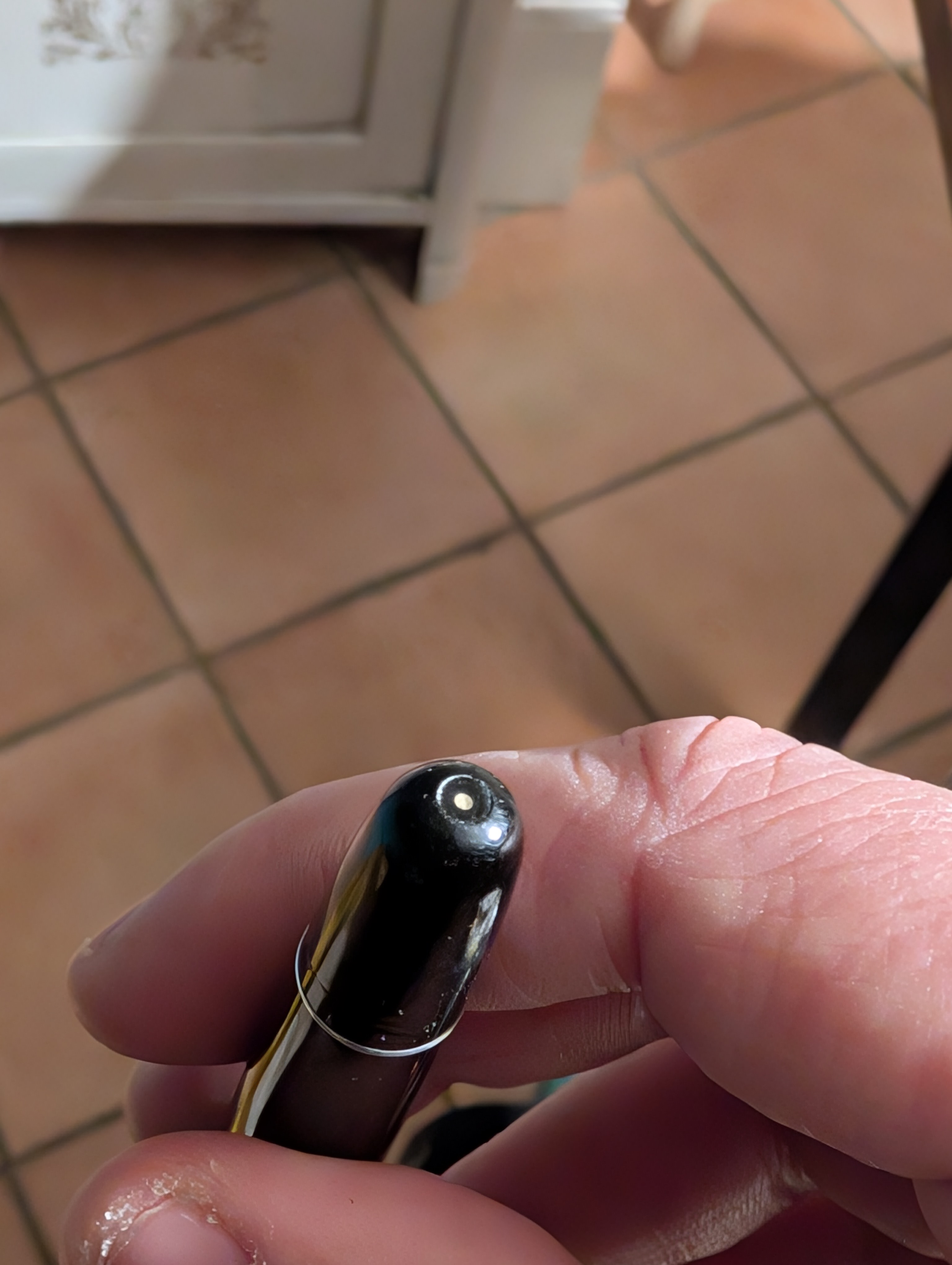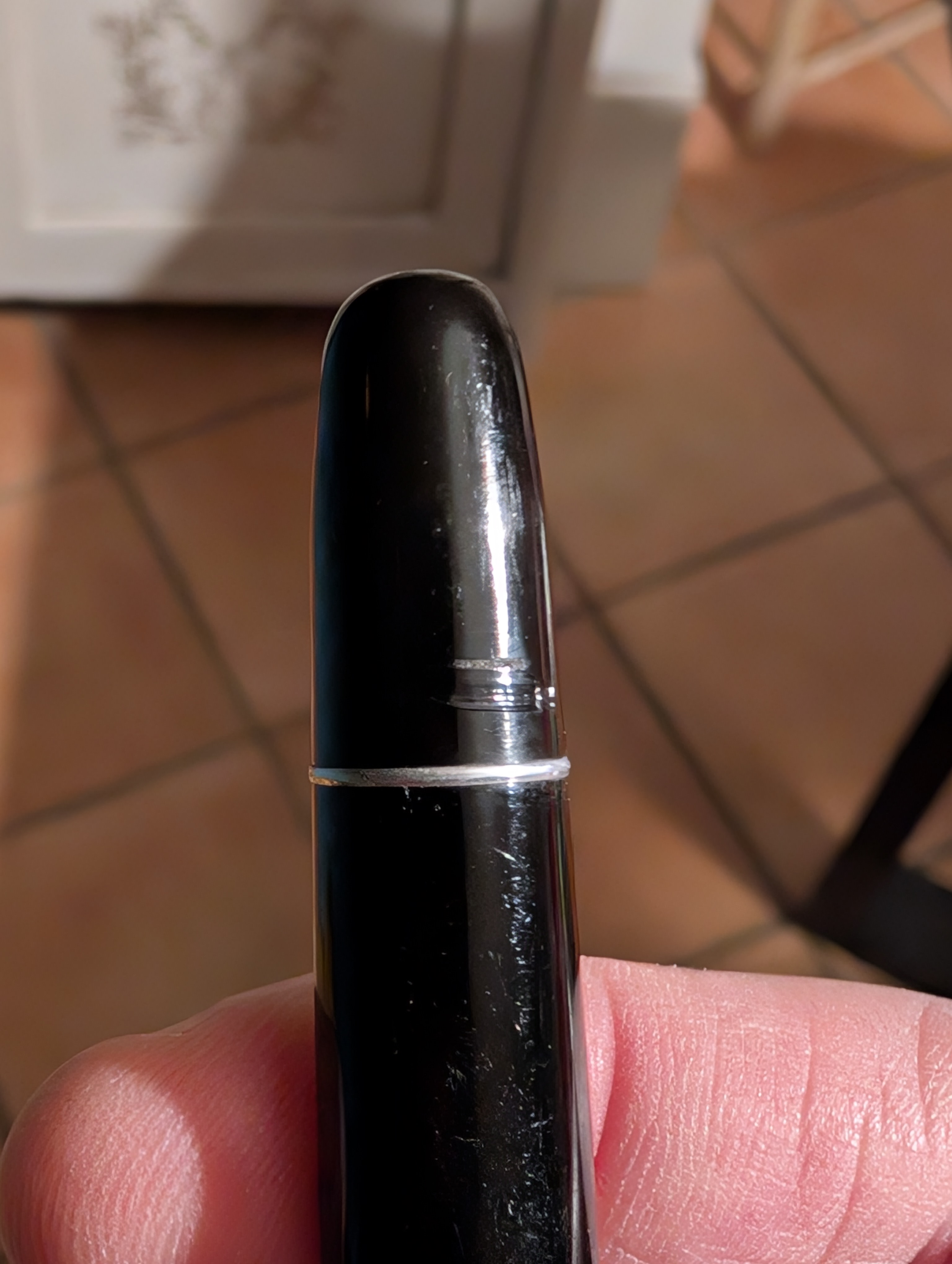comunque la patina giallognola di zolfo affiorato dell'ebanite si toglie con una lieve levigatura; a volte è sufficiente una vigorosa sfregatura con un panno tipo gioielliere.