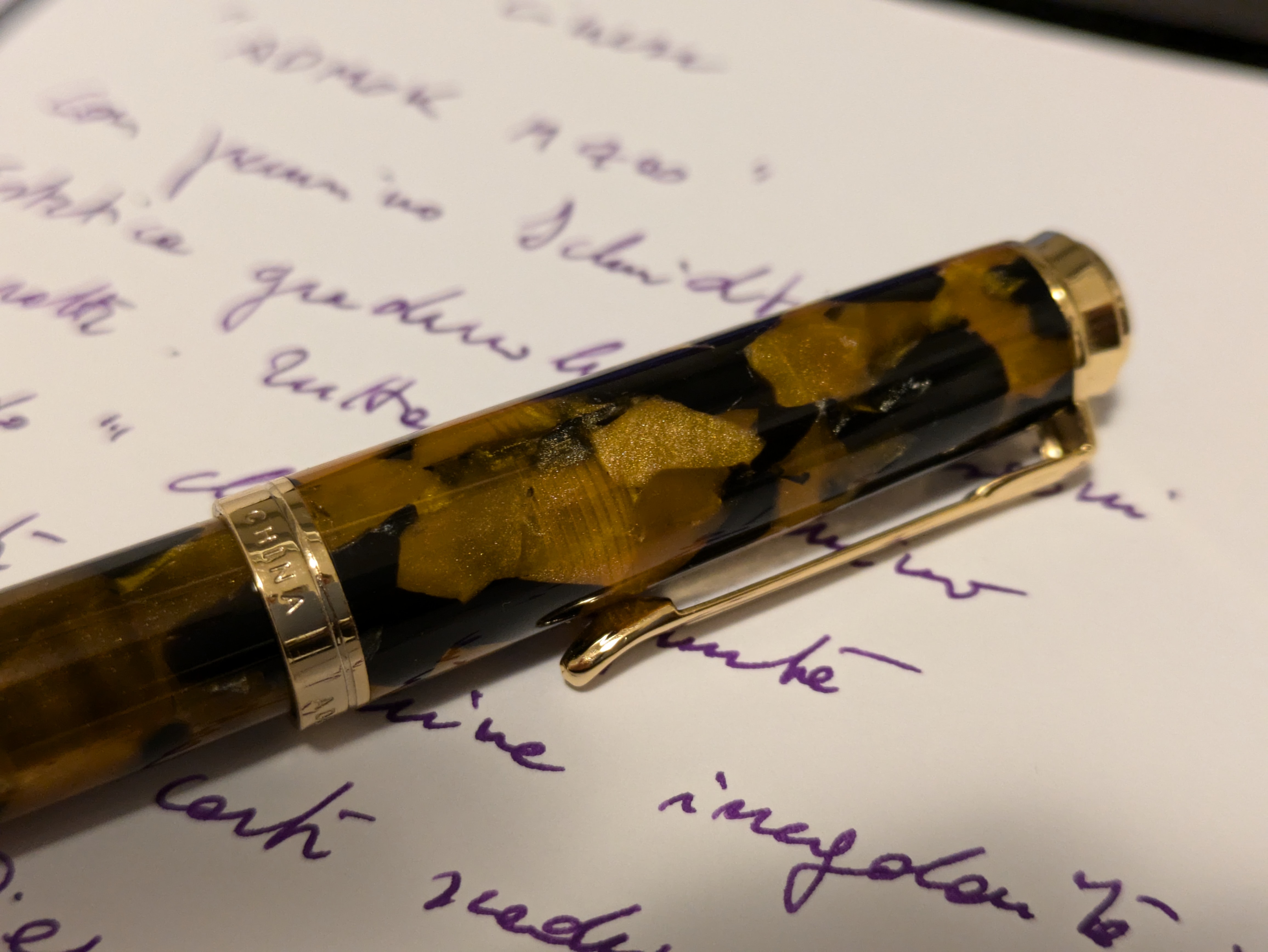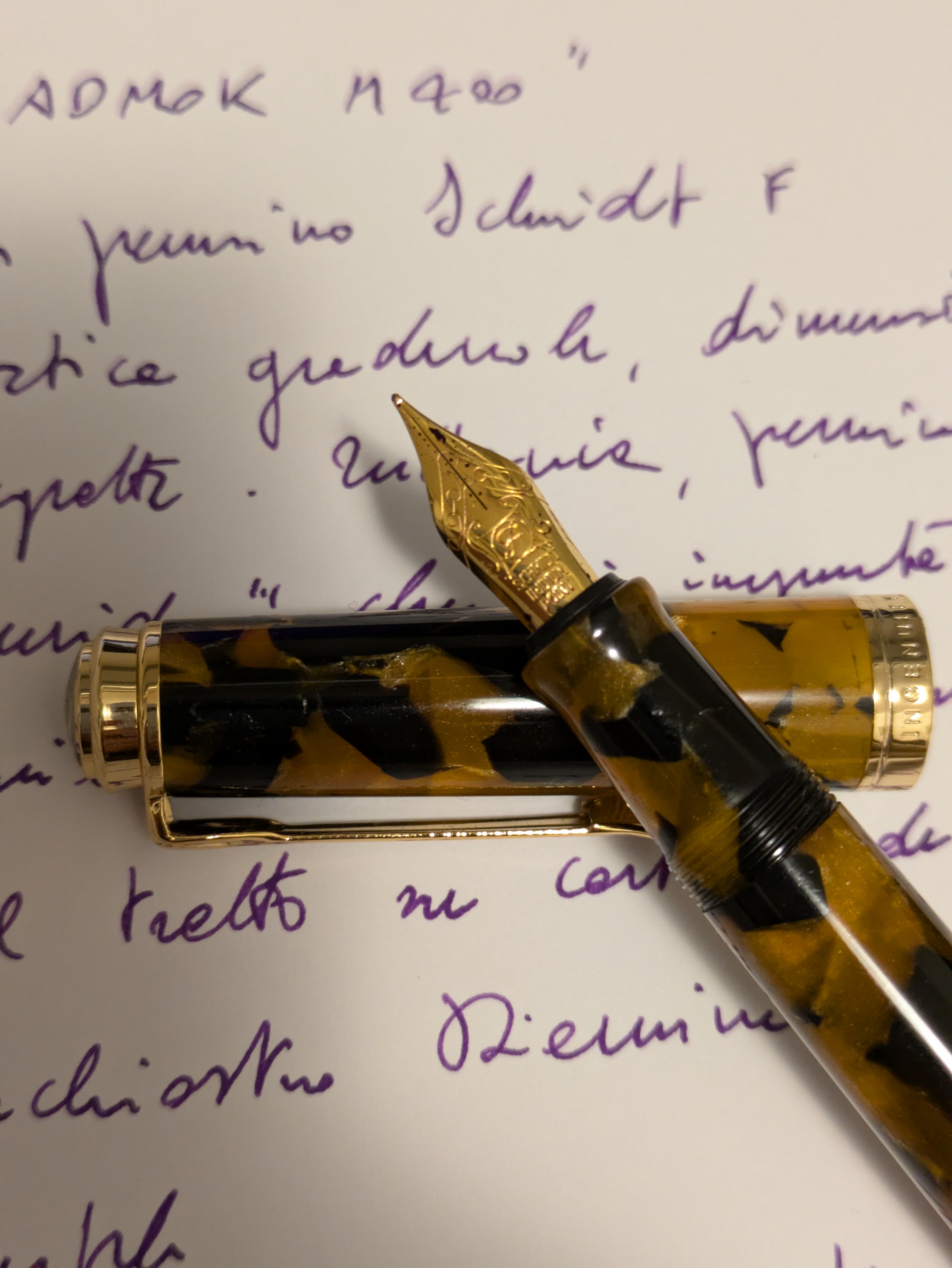 Bella recensione. La penna è un hommage alla Pelikan ( il falso è un' altra cosa), però ha una resina interessante. Magari con un pennino migliore saprà farsi valere di più.