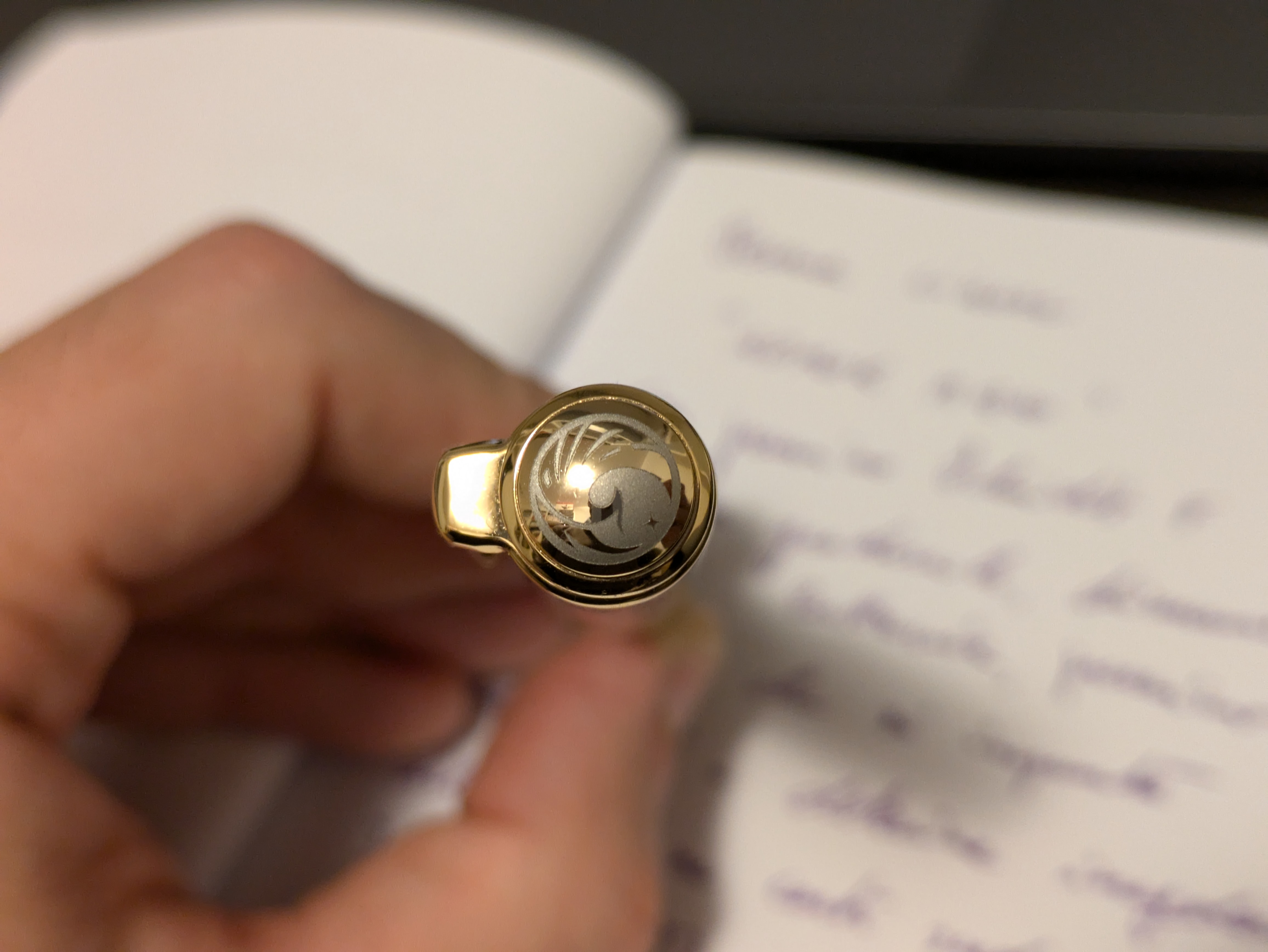 Non conosco il peso; è comunque una penna compatta e leggera, che sta bene nel taschino pronta per l'uso. Trovo confortevole anche l'impugnatura della sezione: mi trovo spesso con le dita sul filetto, come su altre penne, ma la sensazione non è fastidiosa.