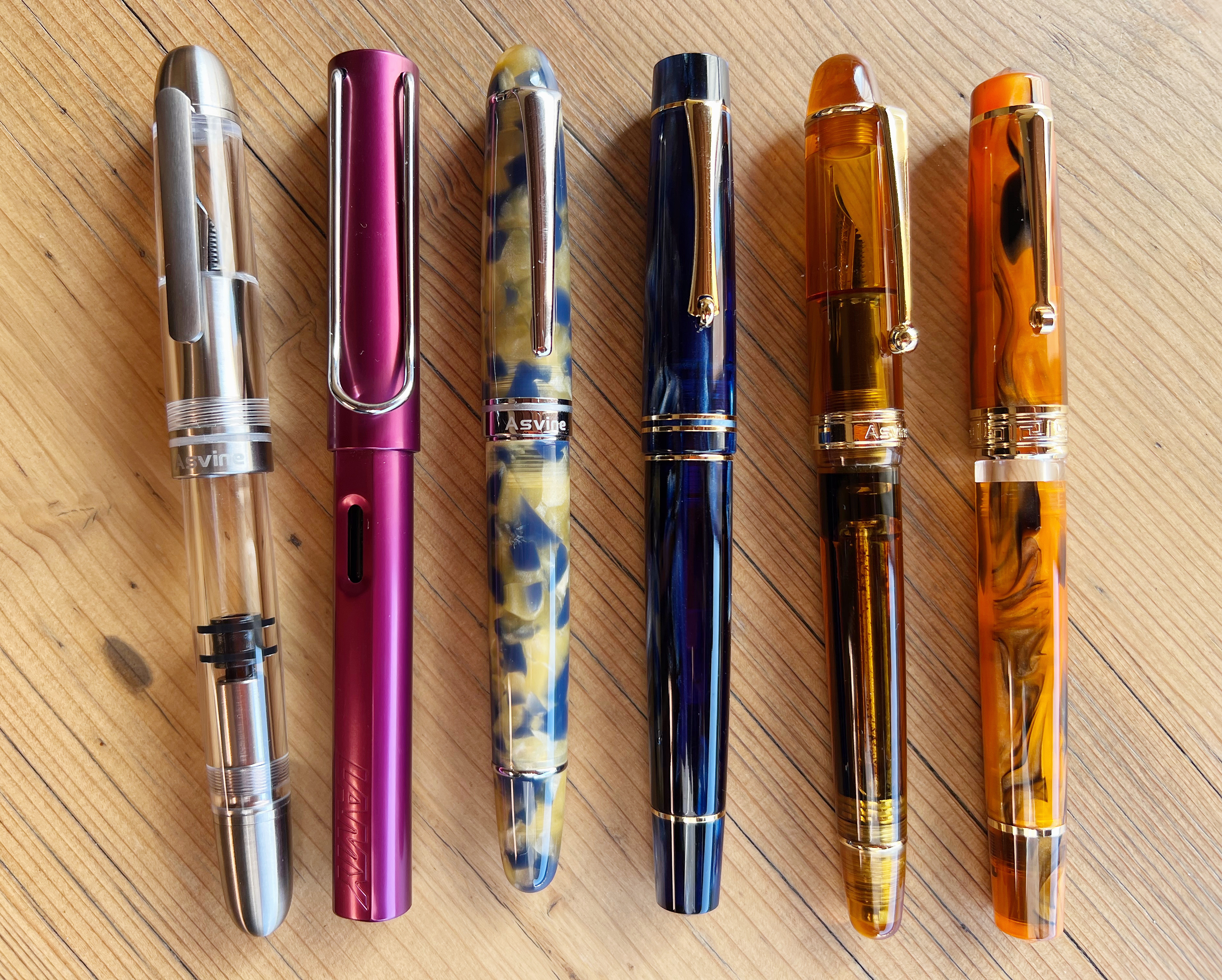 @Christos21 La Asvine V126 la trovo così valida che ne ho due di colori diversi (nei prossimi scatti dovrebbe comparire!). I pennini Asvine , per ora, son quelli con cui mi son sempre trovato bene. Ho provato F ed XF. Zero problemi e scrivono bene. L’XF è molto europeo, Jinhao nei pennini nuovi lo fa più sottile. Rispetto alla Vac700 della twisbi e alla Visconti Homo Sapiens la siringa rovesciata pesca un po meno inchiostro, ma per il resto funziona bene.