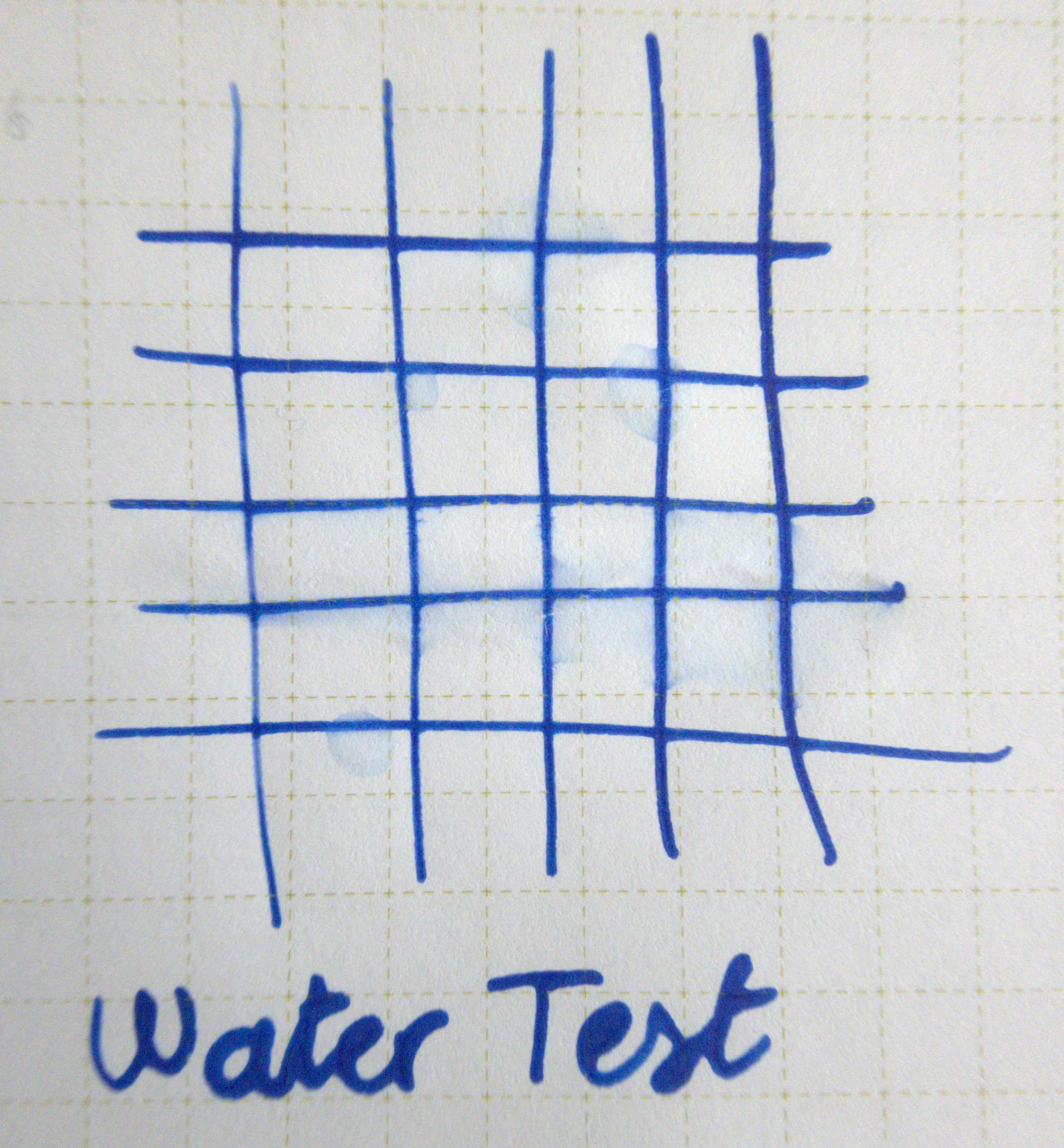 Va detto che è un inchiostro che ha un'ottima resistenza. Non è completamente waterproof. Si vedono aloni lasciati dall'acqua ma, tolto il bagnato, il tratto resta ben vivido, chiaro e leggibile.